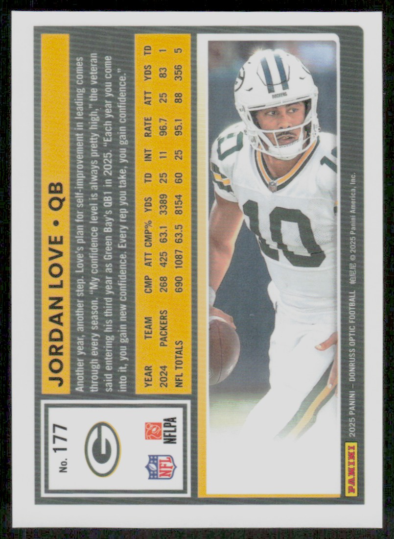 | 2025 Donruss Optic Jordan Love Green Bay Packers #177 |