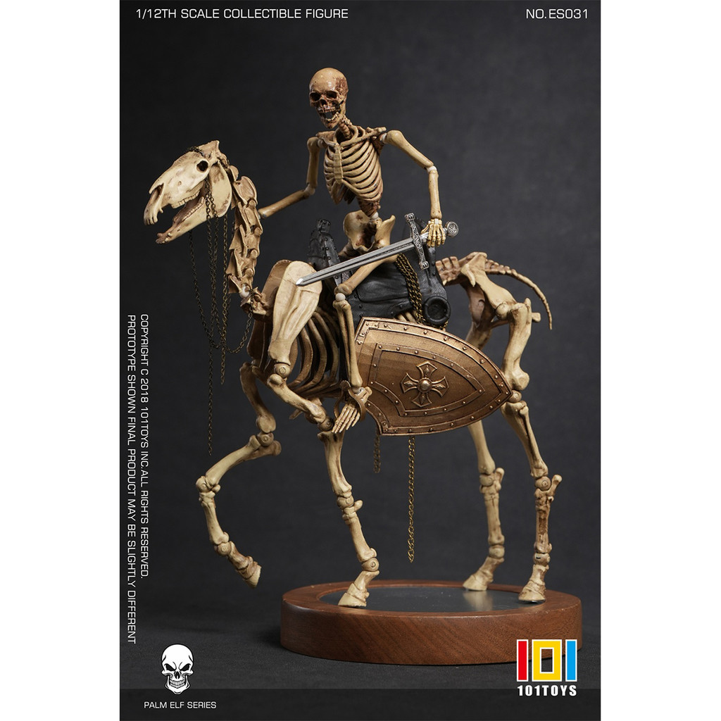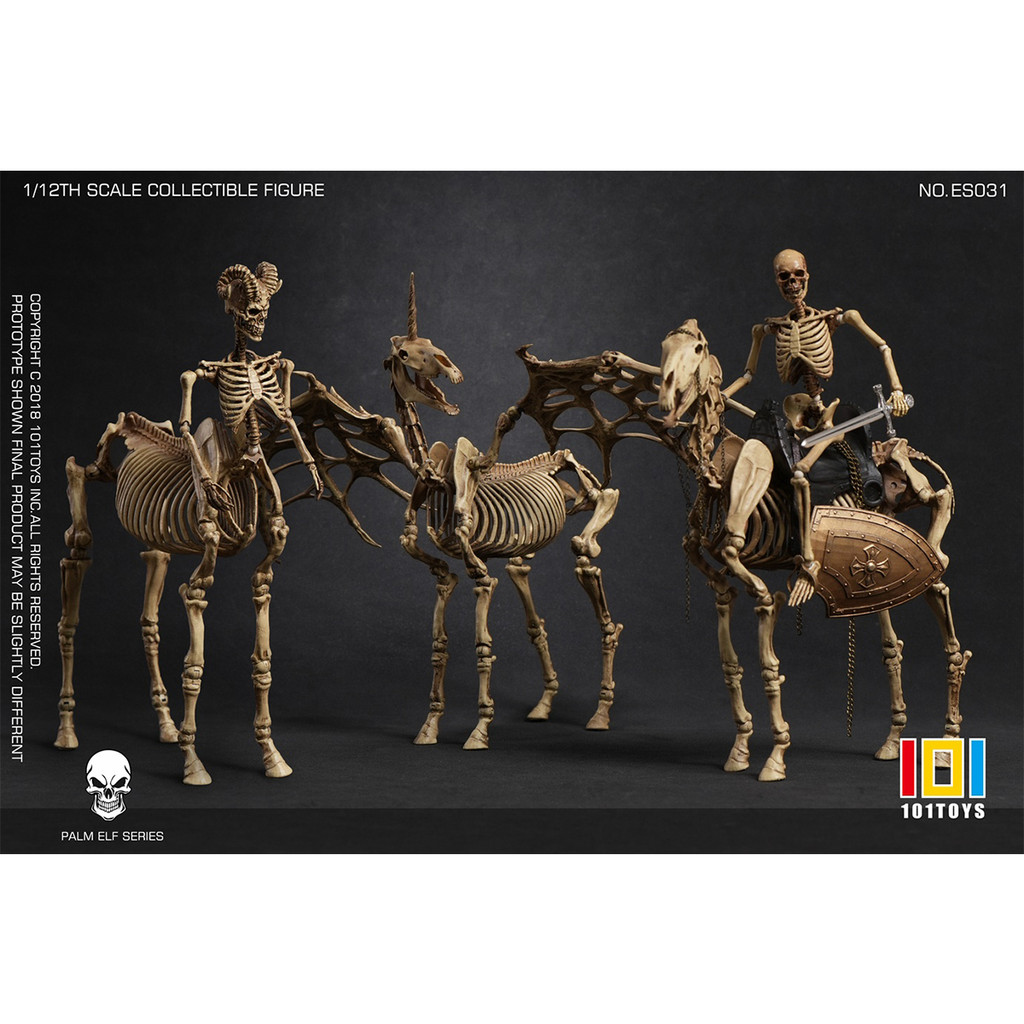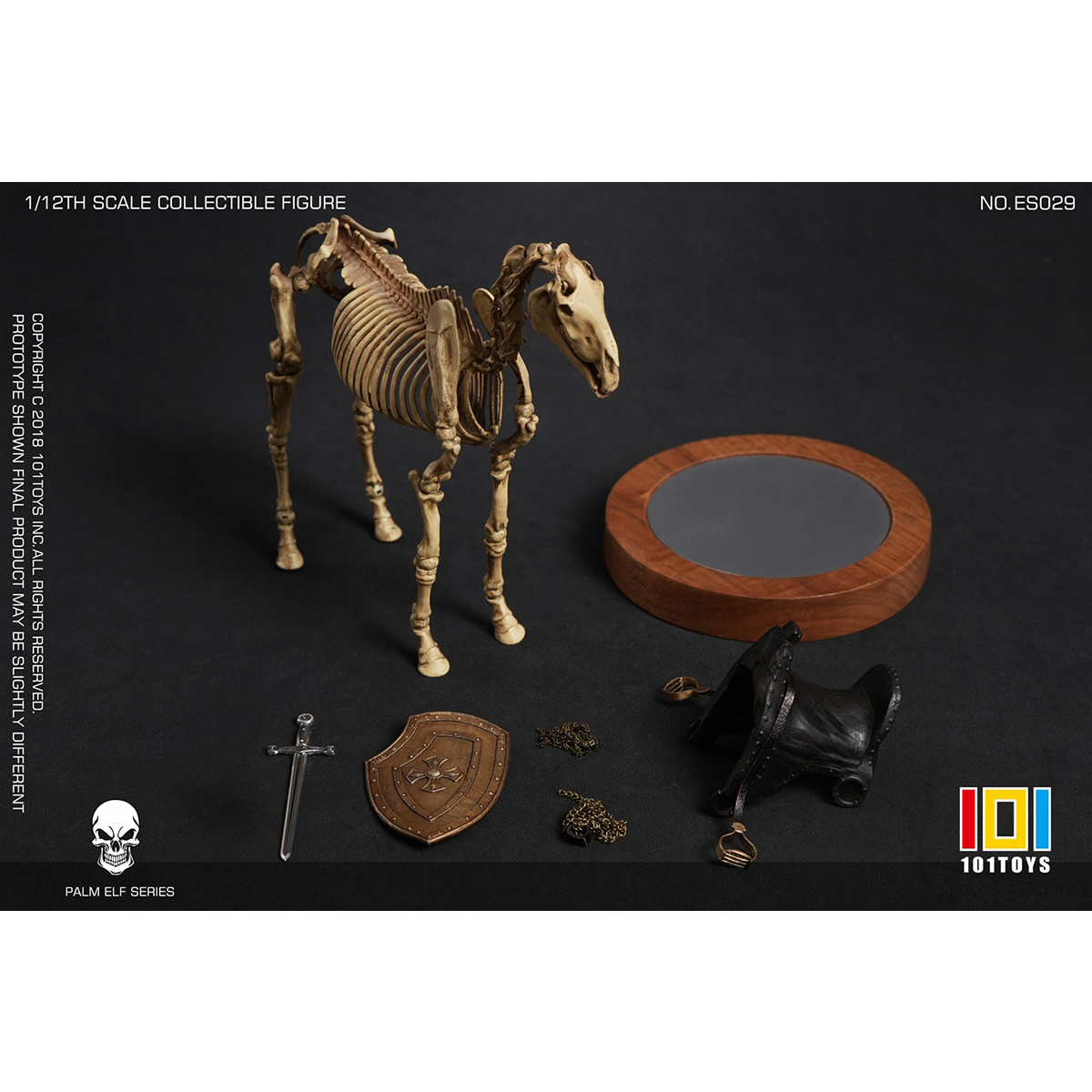 NO.ES029 Skeleton Horse - Character Content: One (1) Skeleton movable horse, One (1) Saddle, One (1) Longsword, One (1) Shield, One (1) Wooden platform. Please refer to the main images for details.