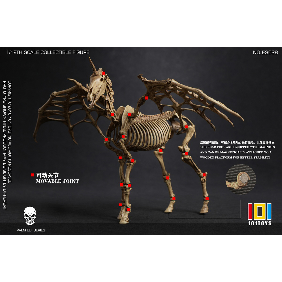 NO.ES028 Skeleton Unicorn - Character Content: One (1) Skeleton movable unicorn, One (1) Wings, One (1) Wooden platform. Please refer to the main images for details.