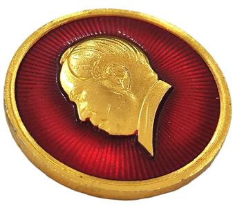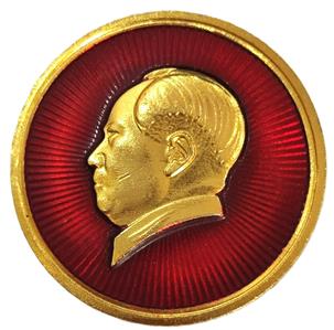 Obv: Profile of Mao in gold (head and collar) on red sunrays disc, gold border.
