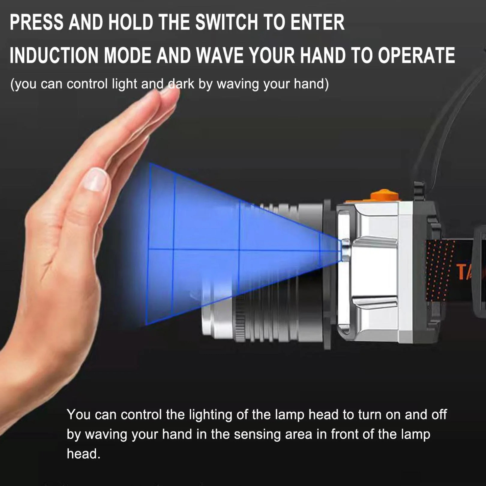 Smart LED Headlamp with Motion Sensor β USB Rechargeable & Hands-Free - Perfect for Camping, Hiking & Outdoor Adventures