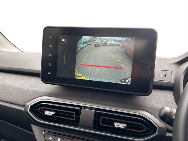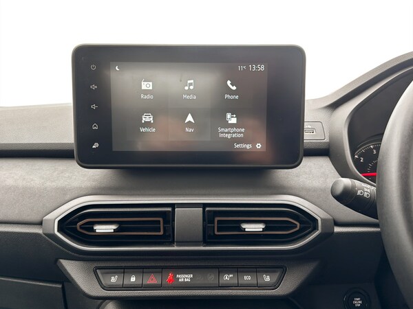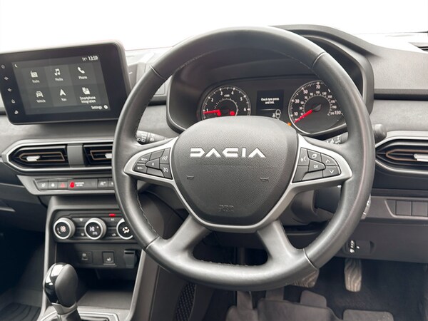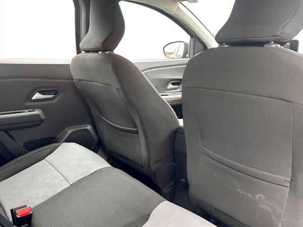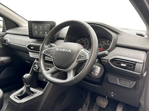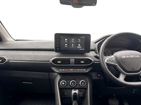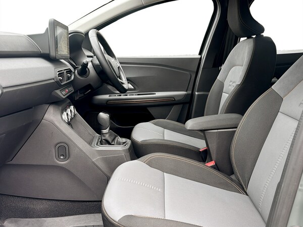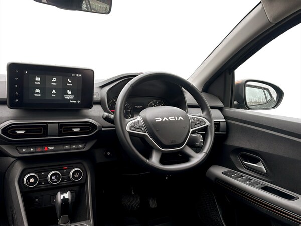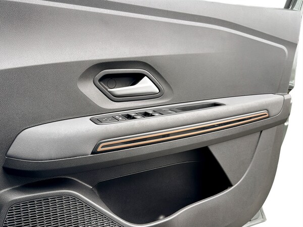 ..3.5'' TFT instrument panel with on-board computer, Blind spot warning, Cruise control with speed limiter, eCall emergency call system, Eco mode, Electric power assisted steering, Extended grip switch, Front parking sensors, Rear parking sensors, Rev counter, Reversing camera, Stop/start system, 8'' MediaNav with DAB Radio + Smartphone replication + Bluetooth + 6 Speakers with Apple Carplay and Android Auto, USB connection for data transfer and charging, USB socket, 3 speed windscreen wipers, Auto lighting, Automatic wipers, Black radiator grille with white inserts stepway inscription, Body colour door handles, Body coloured bumpers, Copper Brown Dacia inscription on tail gate, Copper brown deco part on fog lamp area, Copper brown door mirrors, Copper brown stepway inscription on roof bars, Door sills in topographic pattern, Drivers one touch electric windows, Electrically adjustable and heated door mirrors, Front electric windows, Front fog lights, Heated rear window, High level third brake light, Lateral sticker with topographic pattern, LED automatic daytime running lights, LED Y-shape Dacia signature lighting, Megatith modular roof bars, Rear electric windows, Rear side wing doors, Rear wash/wipe, Shiny black shark antenna, Snorkel sticker with topographic pattern, Tinted windows, 1/3 to 2/3 split folding rear seats, 12 volt front socket, 12 volt rear socket, 3 height adjustable rear headrests, 3 seat rear bench, Automatic air conditioning, Copper brown doors deco parts, Driver and passenger vanity mirror with cover, Fabric upholstery, Fixed smartphone holder on dashboard, Fog grey animation on air vents, Fog grey interior door handles, Front and rear rubber mats with topographic pattern, Height adjustable drivers seat with armrest, Height adjustable front headrests, Height/depth adjustable steering wheel, High central armrest with console storage, Isofix points for child seats in both outer rear seats, Micro-cloud grey fabric on dashboard, Single front passenger seat, Soft feel steering wheel, Steering wheel controls, 3x3 point rear seatbelts, ABS and Emergency brake assist, Automatic emergency braking system, Child locks on rear doors, Door open visual and audible warning, Driver airbag, EBD - Electronic brakeforce distribution, Electronic parking brake, ESC (Electronic Stability Control), ESP + Hill Start Assist, Front curtain airbags, Front seatbelt pretensioners, Front side airbags, Height adjustable front seatbelts, Passenger airbag, Seatbelt