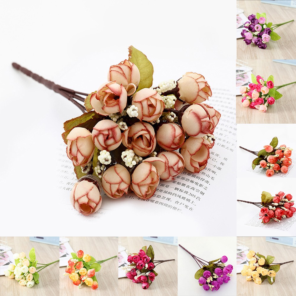 Bouquet en soie artificielle 15 têtes 15 têtes petit bourgeon rose bractée pa