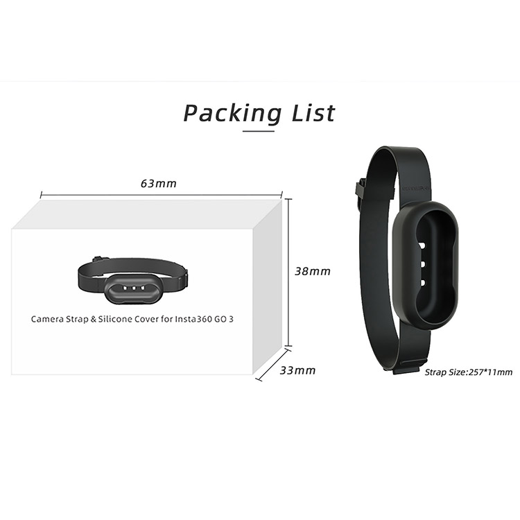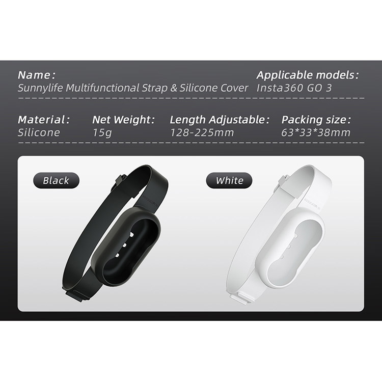 Features: l Magic Band. It can be a It can be a drone adapter strap, wristband palm strap, backpack strap, bicycle strap, cat collar, etc l Multi length adjustable to meet your needs, 128-225mm l Back Hollow Out Design. To help heat dissipating of your Insta360 GO 3 l Scratch-proof, anti-lost dust-proof. Not only a multifunctional strap but also a soft silicone protective cover for Insta360 GO 3 l High-quality silicone material. Anti-tear and not easy deformed l Bringing more perspective to drones. For Mini 3 Pro/Mini 2/SE/Mavic Mini/Air 2S/Mavic Air 2/EVO Nano/Fimi X8 Mini Specification: l Material: Silicone l Color (Optional): Black, White l Size: 287x11mm l Length Adjustable: 128-225mm l Applicable Model: for Insta360 GO 3 l Quantity: 1 PCS Package: l 1x Multifunctional Strap