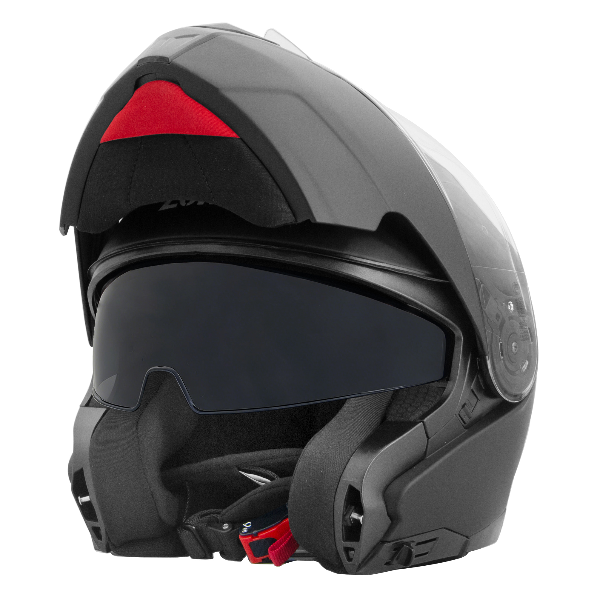 - Fitted with outer clear anti-scratch visor and inner dark sun visor (inner visor operated by side-mounted slider).