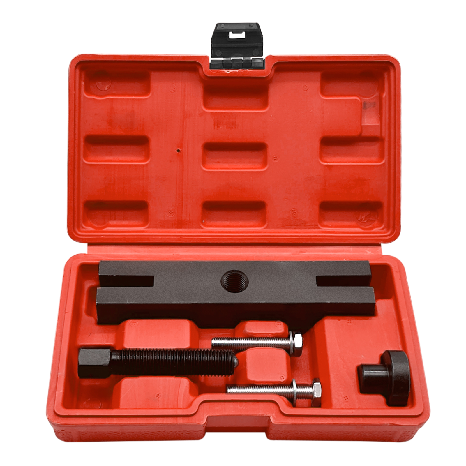 FOR FORD TRANSIT CUSTOM 2.0TDCI ECOBLUE ENGINE TOOL KIT CRANKSHAFT PULLEY PULLER Description: This listing is for Front Pulley Removal Tool fits For Ford EcoBLUE TDCi Transit/Transit custom/Tourneo custom etc. Total set of crank pulley puller remove tool Helps to Removes the front pulley to gain access to the timing belt area. Performs the function of #205-295 (puller), 204-158-01 (crankshaft nose protector spigot) for the applications listed only. Product Details: Condition: Brand New, Premium Quality Colour: Red Fitment: For Ford Transit 2016-2018 TDCi Transit Custom 2016-2018 Tourneo Custom 2016-2018 Engine Codes: YLFS, YMFS, YNFS, YLF6, YMF6, YNR6, YMR6, YLR6, YNF6 - For Transit Ecoblue TDCi AWD,FWD,RWD 2016+ - For Transit custom 2016+ - For Transit custom kombi 2016+ - For Tourneo custom 2016+ Package Included: 1 x Crankshaft Pulley Puller Remove Tool |