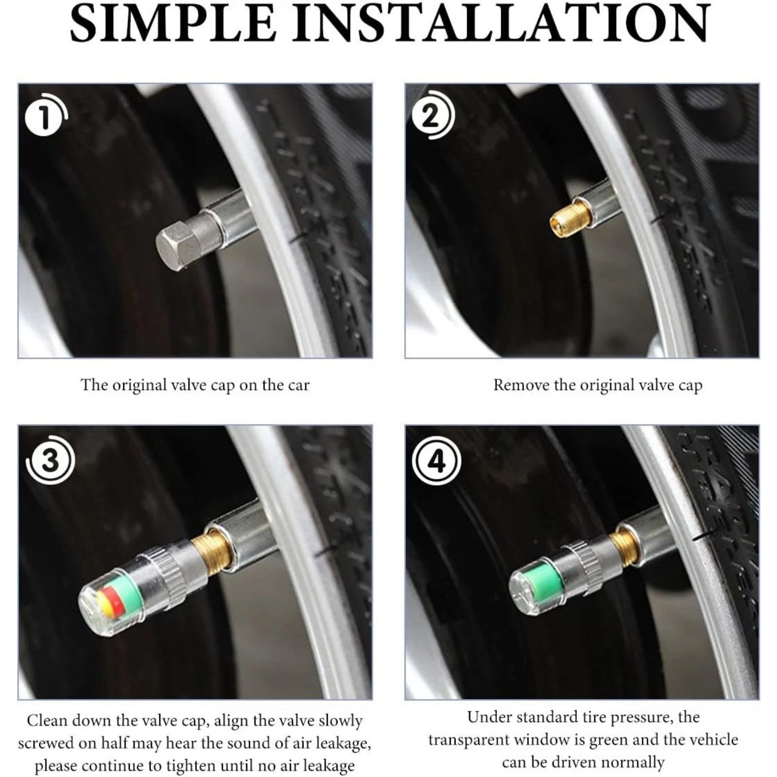 Package Included: 4 x Tire Pressure Monitor Valve Caps