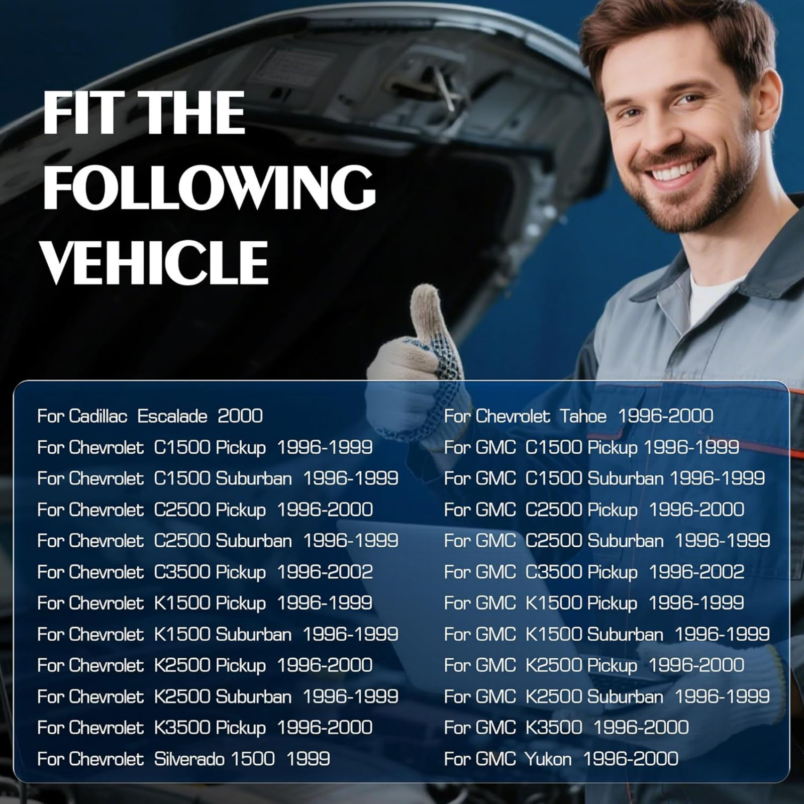 Features: 1. Please Verify This Is The Right Part Number Before Ordering 2. Use Quality Materials, 100% Tested Before Shipping 3. Easy Install And Convenient To Use 4. Great Quality, Direct Replacement Specifications: Type: HVAC Heater Climate Control Module Condition: 100% New Material: Metal+Plastic OEM: 9378815, 15-72548, 599-007, HS505, HS-505, 09378815, 599007, 1572548, 16231175, 16238895, 16240115 Fitment: For Cadillac Escalade 2000 For Chevrolet C1500 Pickup 1996-1999 For Chevrolet C1500 Suburban 1996-1999 For Chevrolet C2500 Pickup 1996-2000 For Chevrolet C2500 Suburban 1996-1999 For Chevrolet C3500 Pickup 1996-2002 For Chevrolet K1500 Pickup 1996-1999 For Chevrolet K1500 Suburban 1996-1999 For Chevrolet K2500 Pickup 1996-2000 For Chevrolet K2500 Suburban 1996-1999 For Chevrolet K3500 Pickup 1996-2000 For Chevrolet Silverado 1500 1999 For Chevrolet Tahoe 1996-2000 For GMC C1500 Pickup 1996-1999 For GMC C1500 Suburban 1996-1999 For GMC C2500 Pickup 1996-2000 For GMC C2500 Suburban 1996-1999 For GMC C3500 Pickup 1996-2002 For GMC K1500 Pickup 1996-1999 For GMC K1500 Suburban 1996-1999 For GMC K2500 Pickup 1996-2000 For GMC K2500 Suburban 1996-1999 For GMC K3500 1996-2000 For GMC Yukon 1996-2000 Packaging Includes: 1* HVAC Heater Climate Control Module