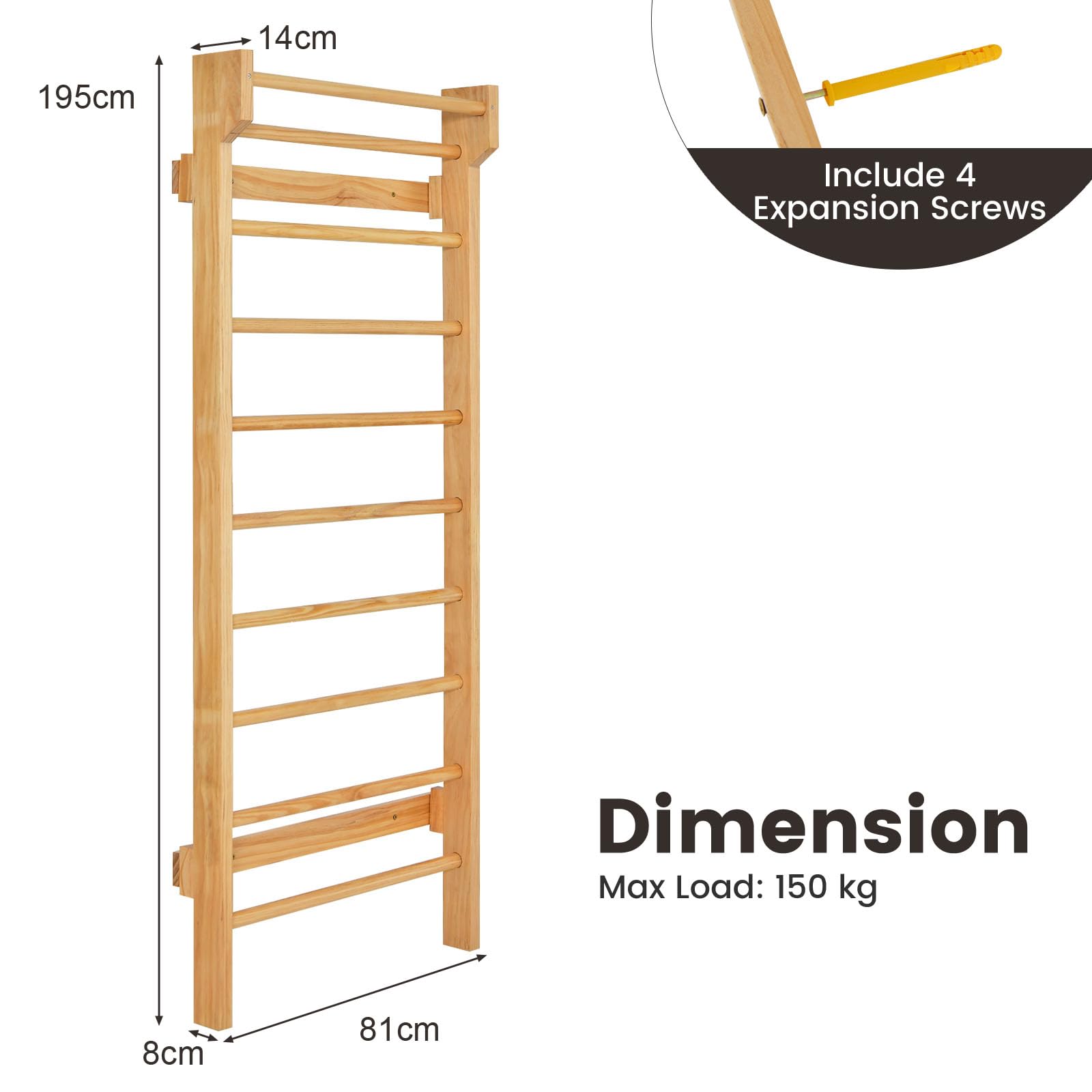 FACILE DA MONTARE E PULIRE: Questa barra per trazioni di legno viene fornita con viti di espansione, consentendo agli utenti di montarla facilmente seguendo le istruzioni, risparmiando tempo e fatica. La superficie trattata con vernice trasparente è facile da pulire e mantenere igienica, consentendo agli utenti di effettuare la manutenzione quotidiana senza sforzo
