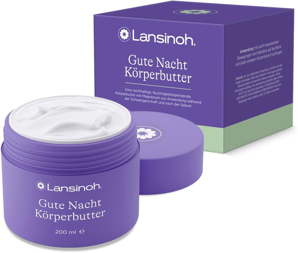 Lansinoh kojące masło do ciała z magnezem, 200 ml- to odżywiające masło do ciała, z zawartością idealnie wyselekcjonowanych składnikw. Bezpieczne do użycia w ciąży i w połogu. Kojący magnez, naturalne masło shea i masło kakaowe idealnie wchłaniają się w skrę przez noc.
