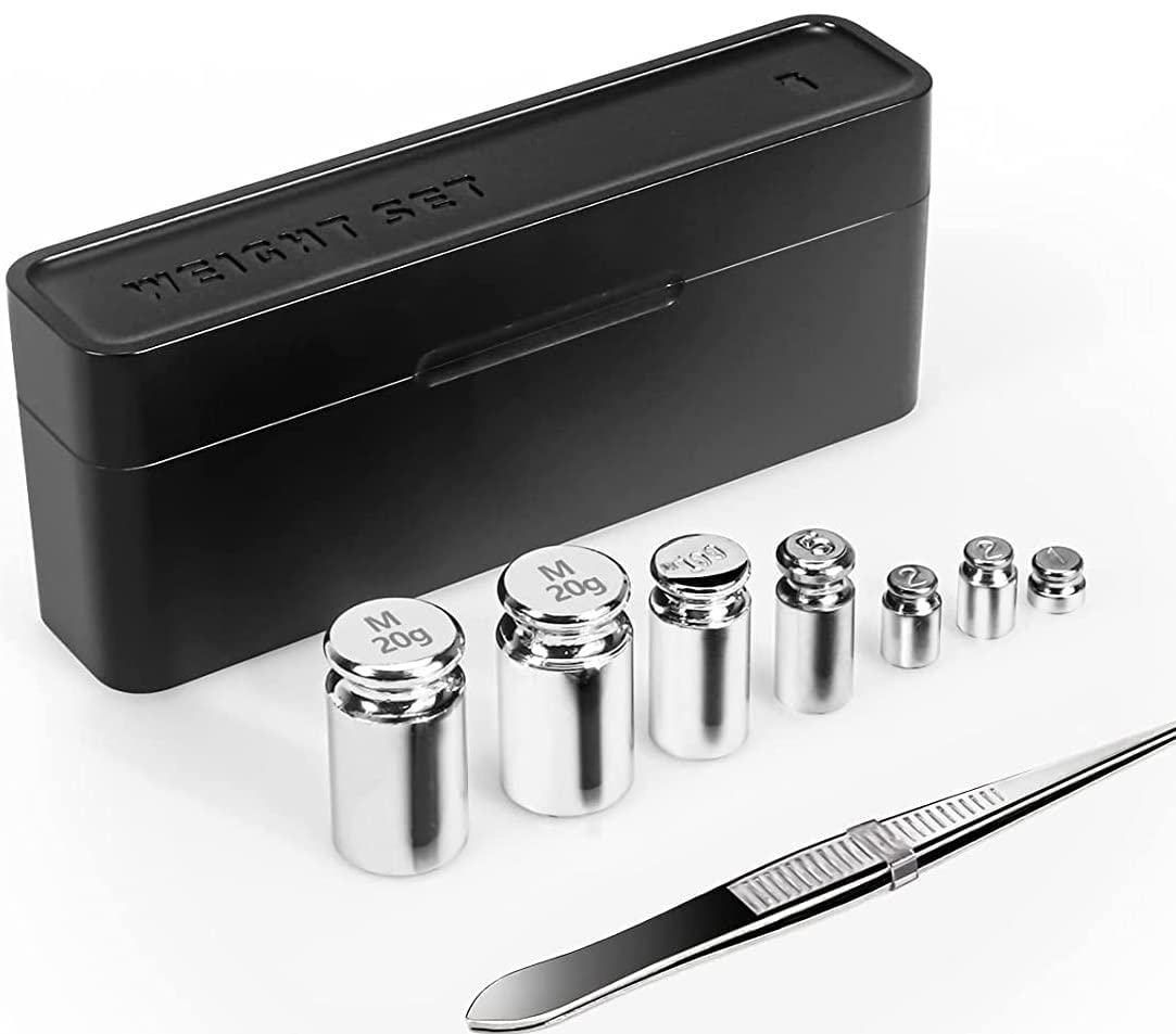- What You Get:7PCS calibration weight 1x1g,2x2g,1x5g,1x10g,2x20g and 1piece of tweezer.
