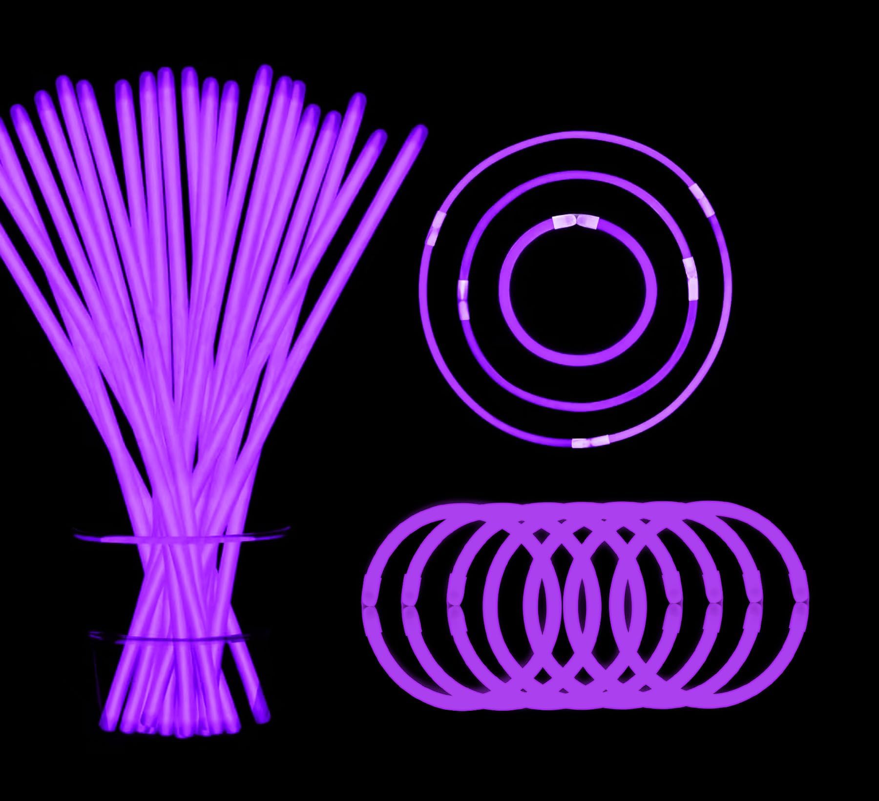 Glow in the Dark Party Supplies: You will receive 50 pieces purple glow sticks and 50pcs connectors,each stick length is 8",you can connected to making bracelets or necklace,add will more fun to your extra special light-up party celebration such as Halloween,New Year,Easter, 4th of July,birthday celebration,pool party or wedding