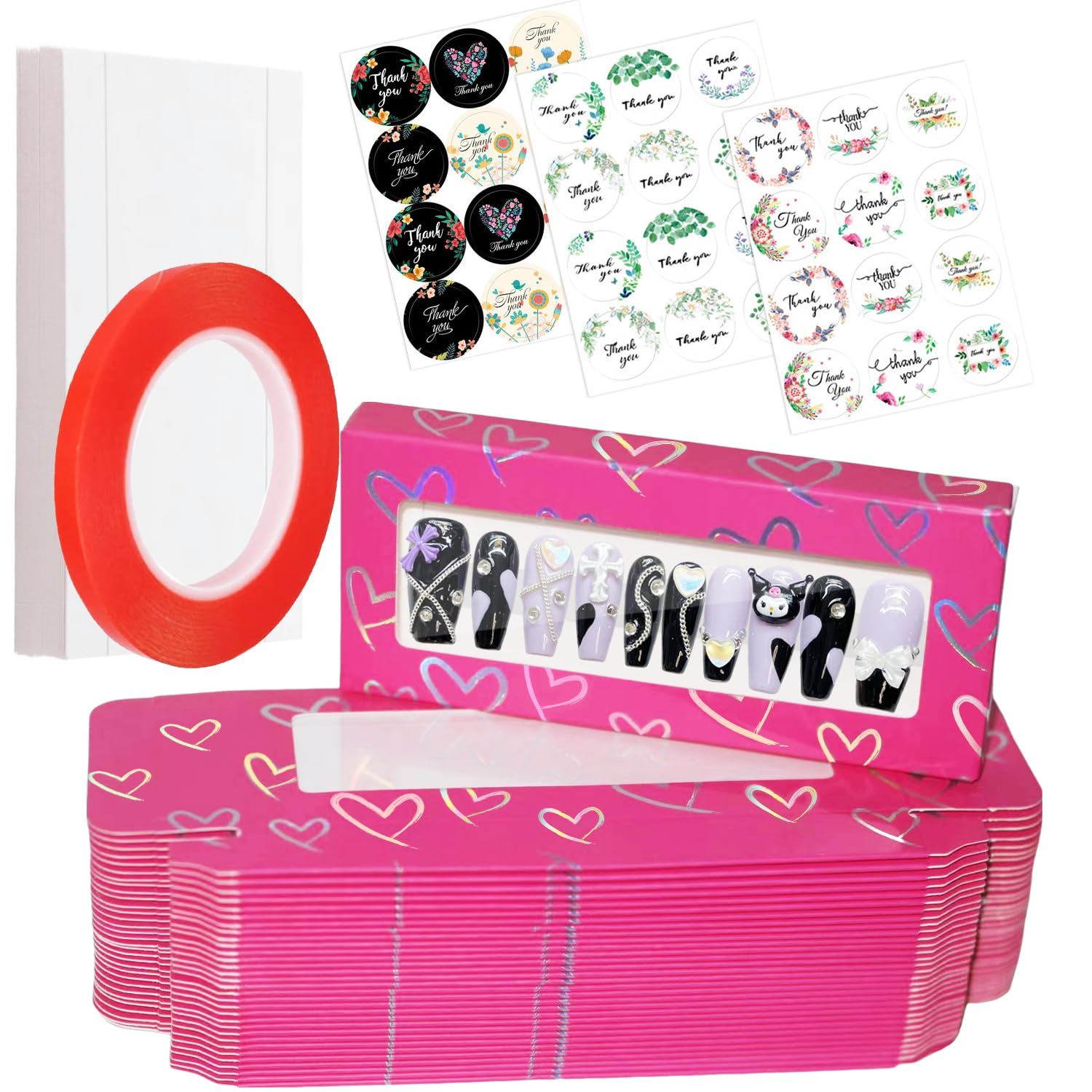 74 Pieces Empty Nail Package Box Set: You will receive 35 nail art boxes, 35 sheets of white cardstock, 3 sheets of random thank you stickers (36 small stickers included), a roll of 3 meters of clear double sided tape, plenty of quantity, perfect for your daily use