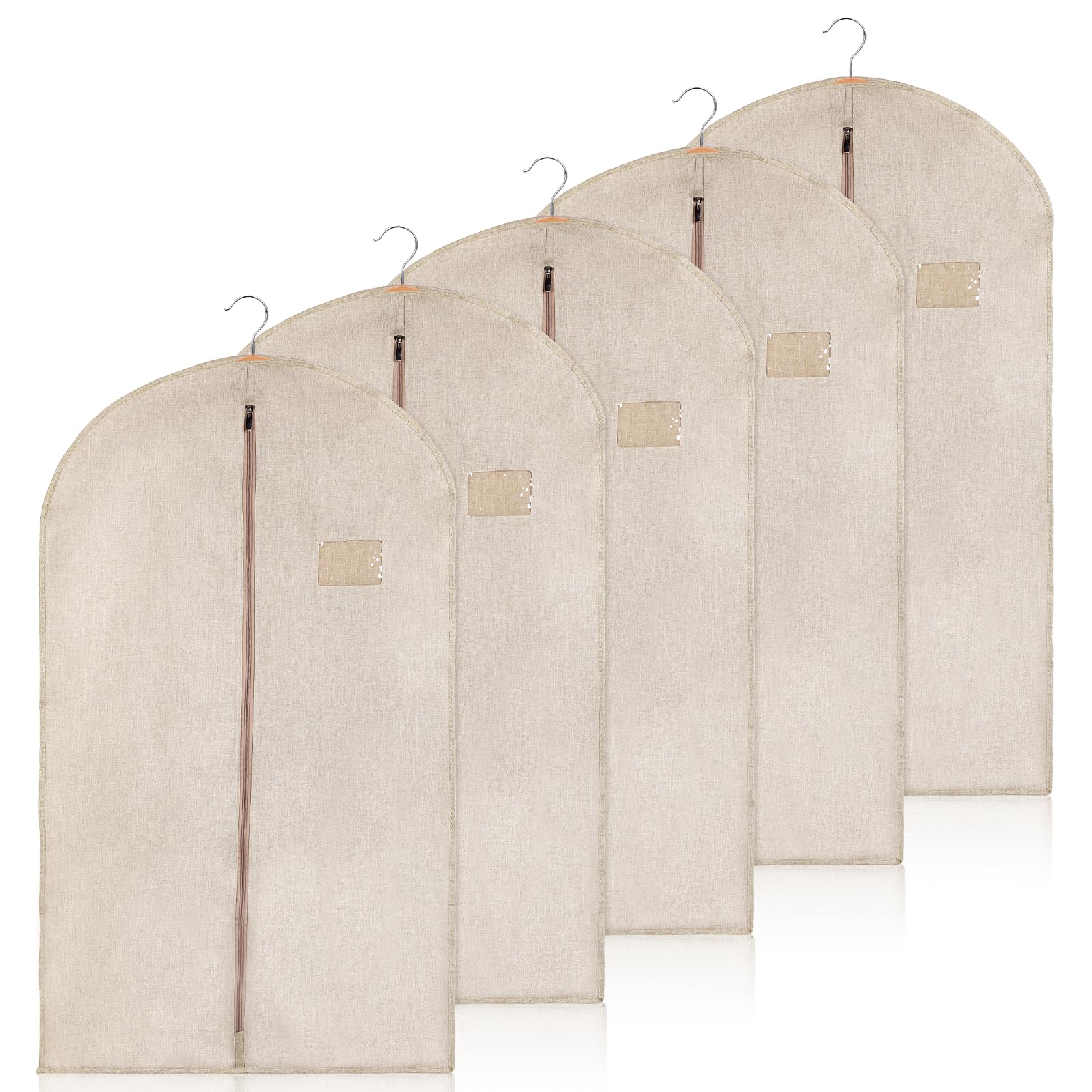 - Non-woven Fabric Material: Each garment bag is made of a durable, breathable, non-woven fabric that mimics cotton and linen. Its elegant design complements any wardrobe style, enhancing the overall appearance of your storage space.