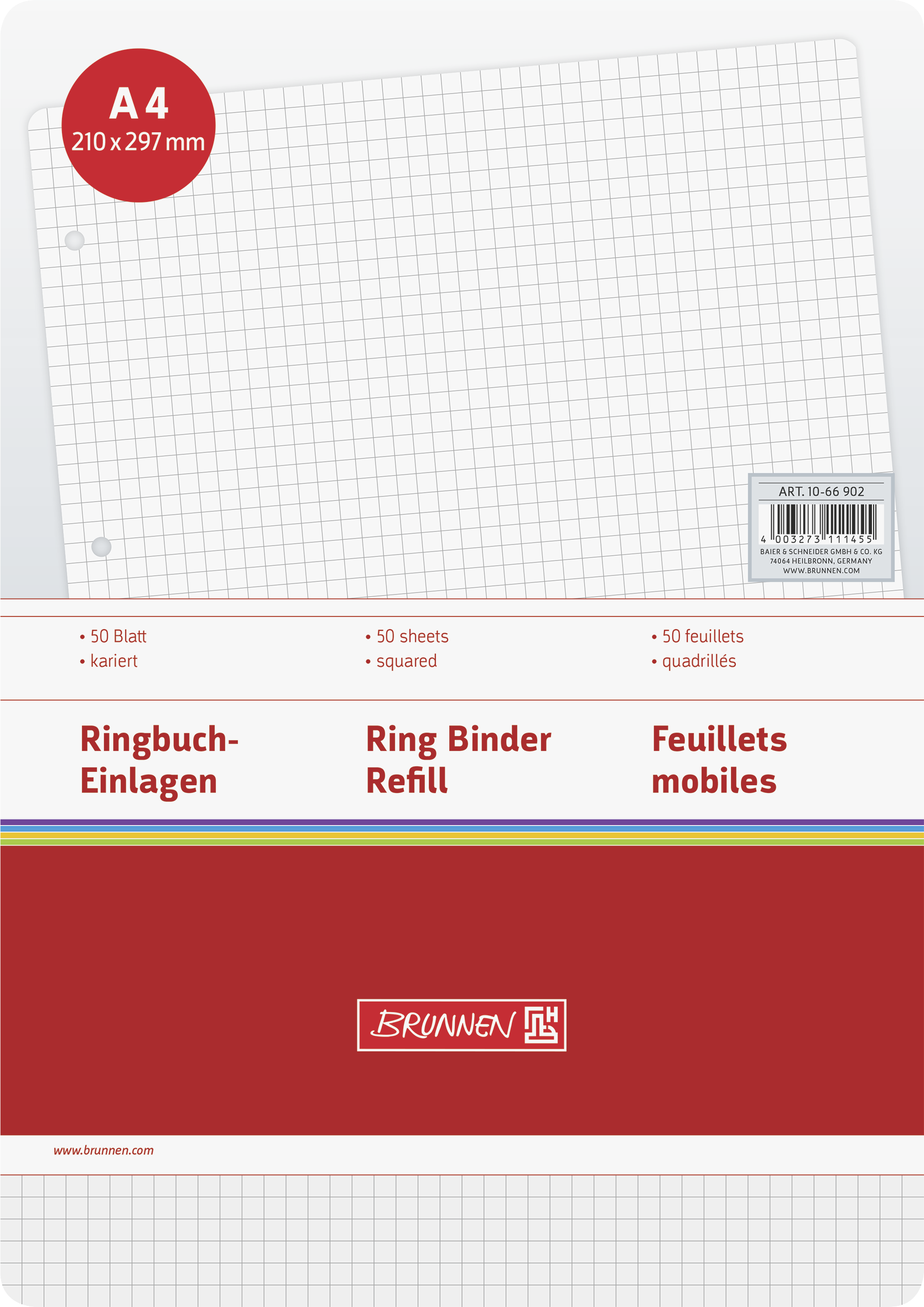 Titel: Brunnen Ringbucheinlagen A4 (kariert, 50 Blatt, 70 g/m², 4fach gelocht), Einband: Bürobedarf und Schreibwaren, Verlag: BRUNNEN, Maße: 300x210x6, Gewicht: 216 g, Verkäufer: Wegmann1855