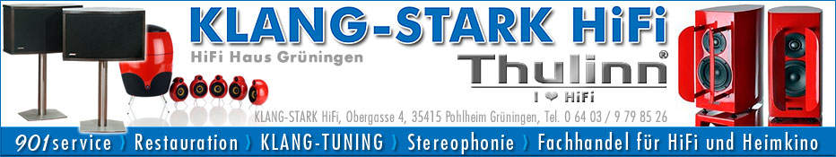 Wir freuen uns darauf, Sie bei KLANG-STARK HiFi begrüßen zu können: auf 130 Quadratmetern dreht sich alles um klassisches HiFi, High-End und um Heimkinoanlagen - sowohl mit hochwertigen TV-Panels als auch mit Projektionstechnik. Alle Entwicklungen unserer eigenen Marke Thulinn® sind vorführbereit. Die KLANG-STARK Minimal Preis Garantie schützt Sie vor ausufernden Preiskämpfen.