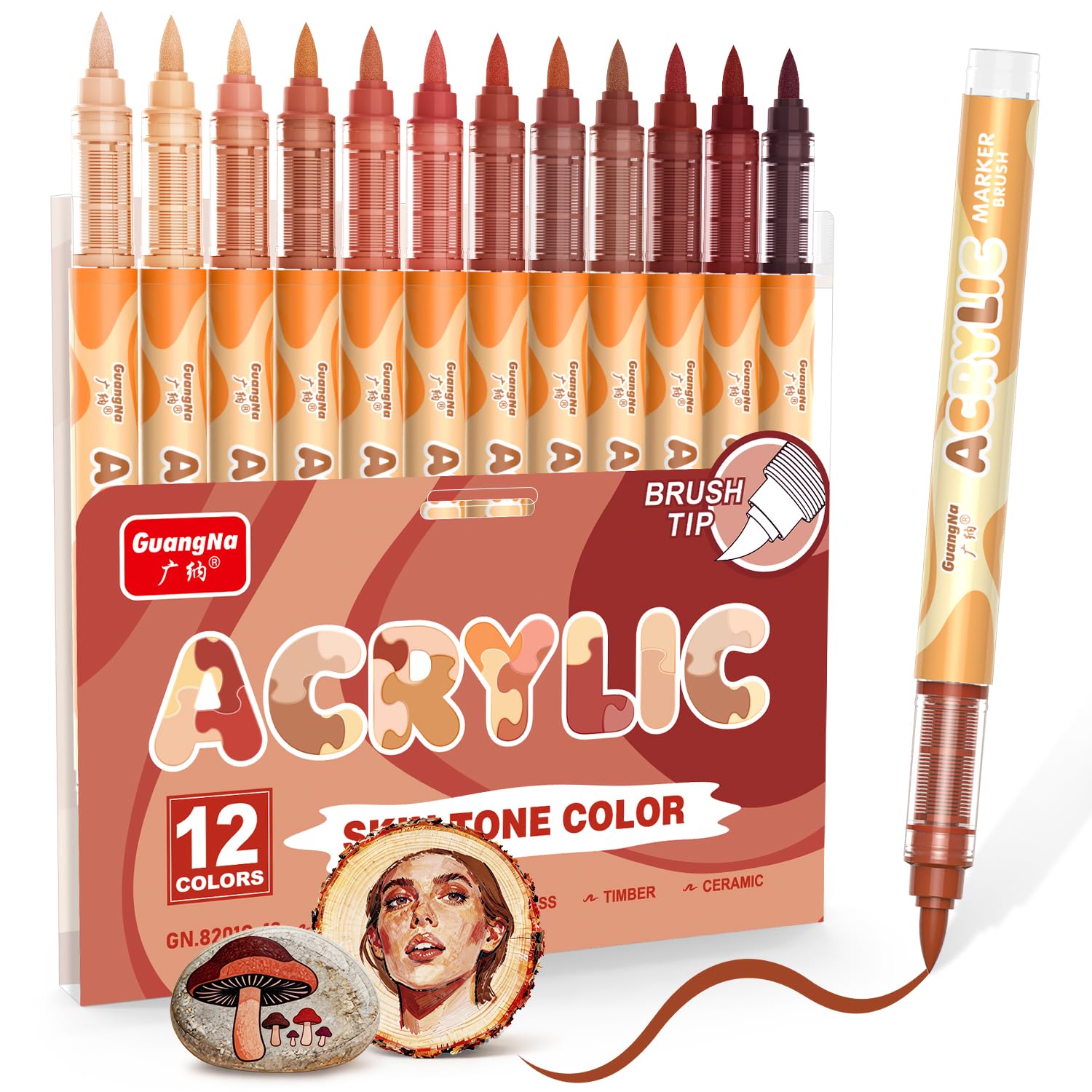 Guangna 12 Skin Tone Acrylic Paint Markers, 1 Count (Pack of 12), Red Brown