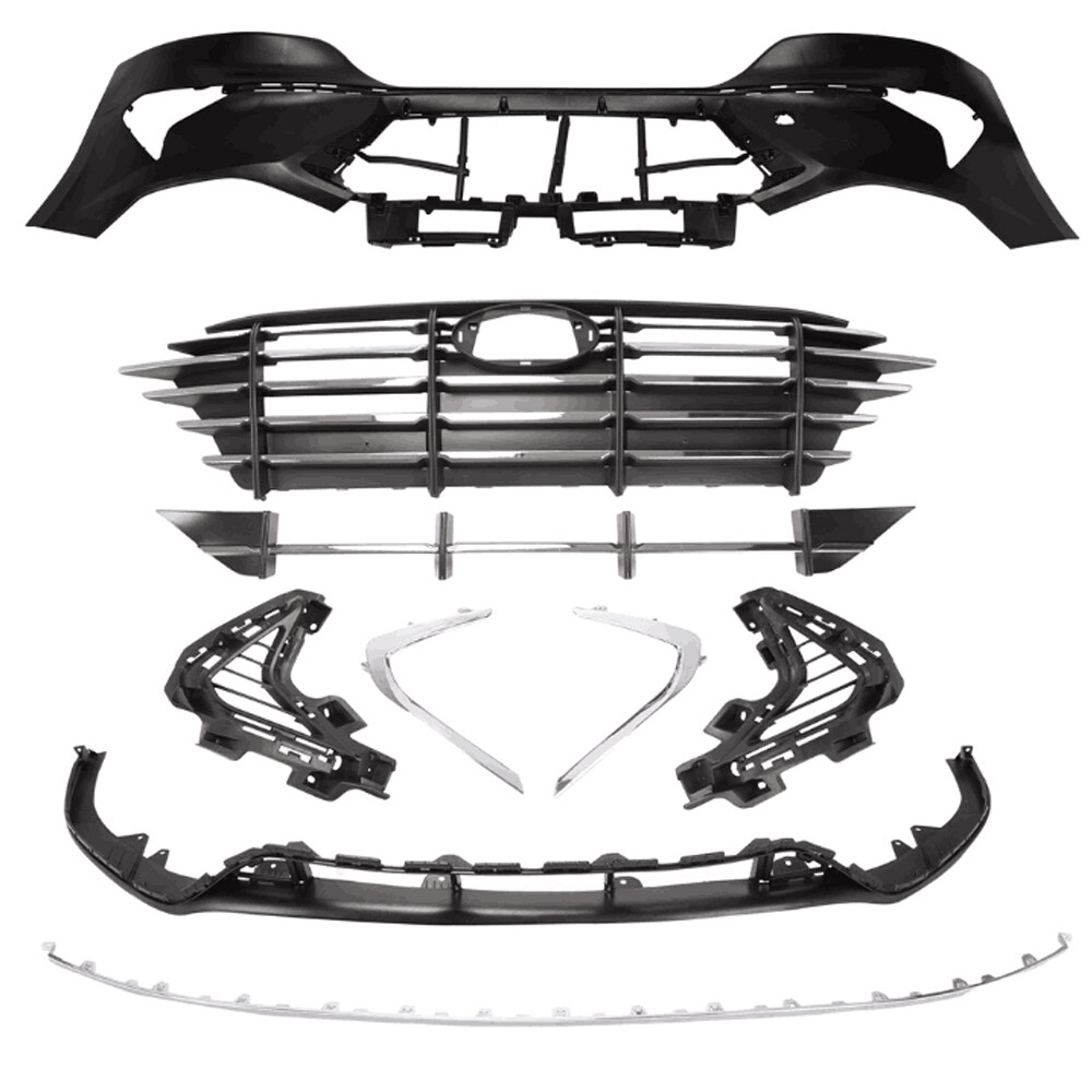 Includes Front Bumper (Upper and Lower), Grill Upper and Lower, Side Molding, Fog Cover (Right and Left), Chrome Fog Cover Trim,