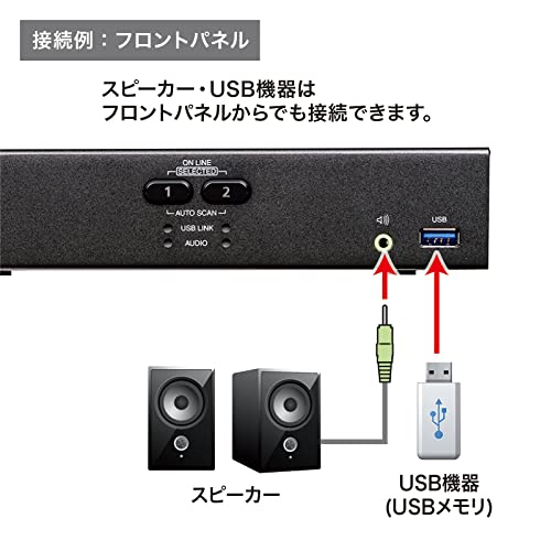 Equipped with two USB3.2 Gen1 hub ports, you can switch and share various USB devices such as card readers and printers between two computers. In addition, it is possible to switch individually, so you can work on one computer while operating a USB device on another computer.
