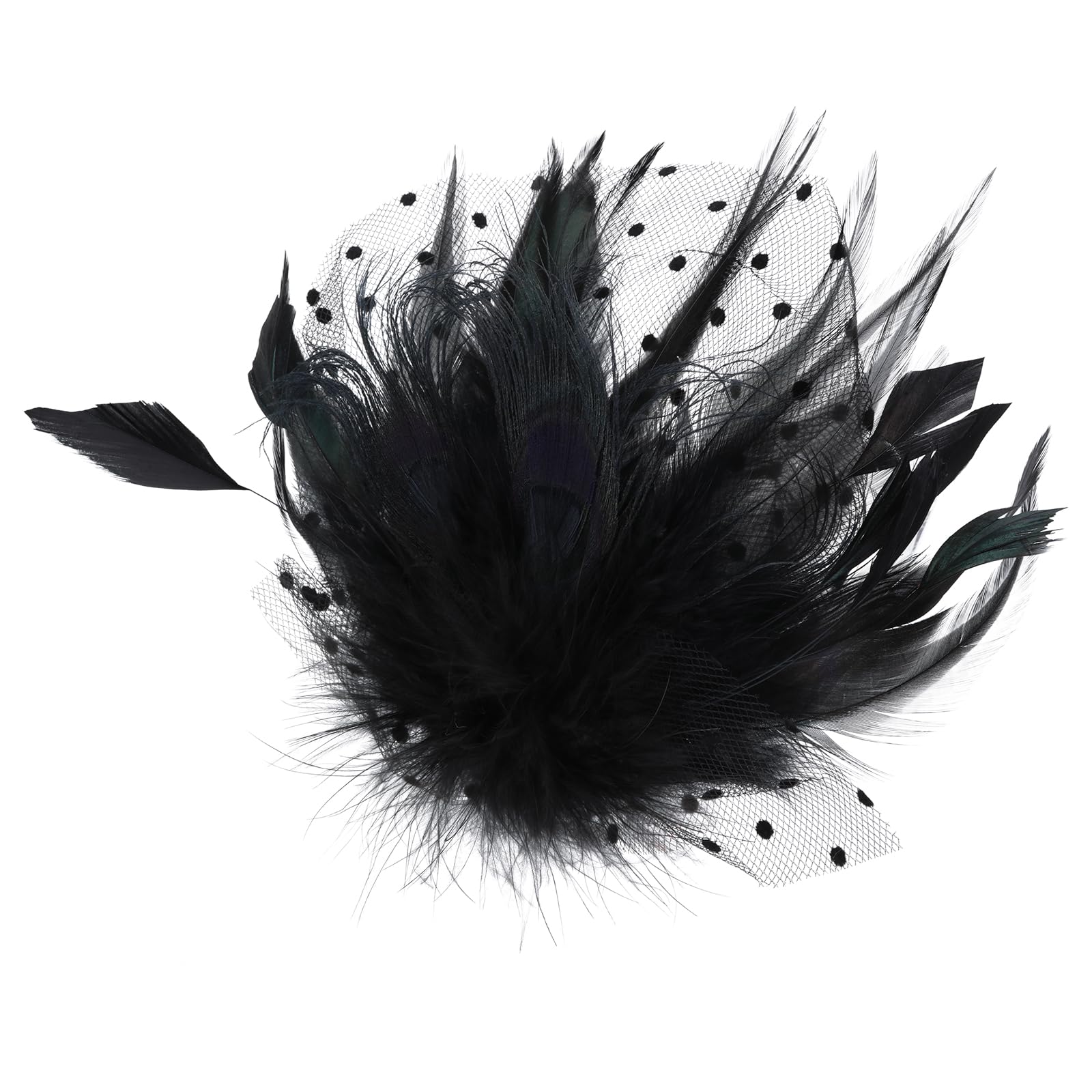 - Vintage Design: Fascinator hat for women is polka dot mesh and faux peacock feathers design, shapes like a fan. As your body sways, the feathers with it, adding a bit of flair to any vintage clothes, which will make you look more graceful and sexy.