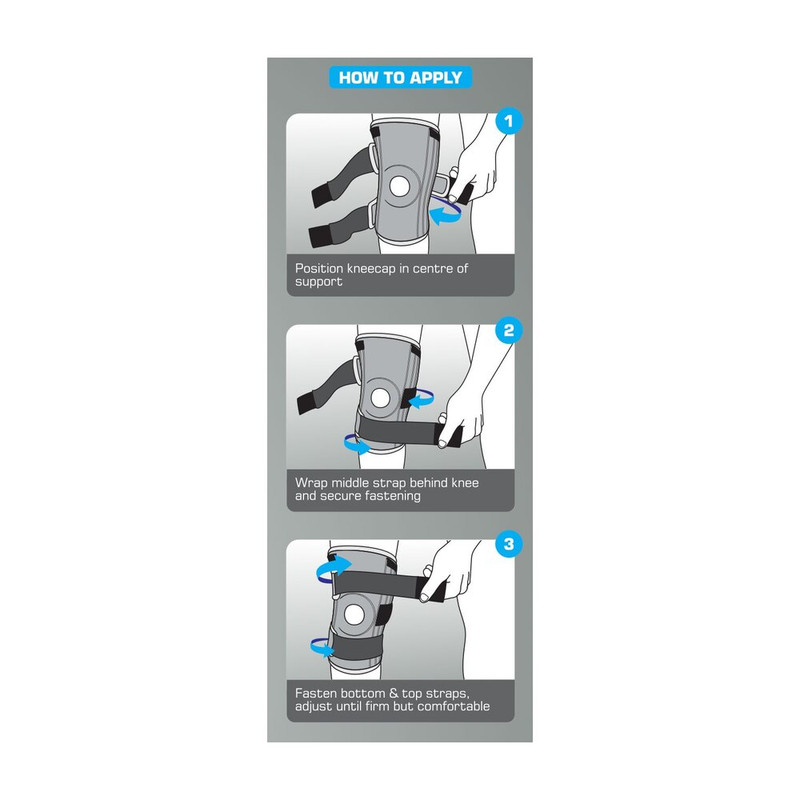 - Helps with strains, sprains, instability and patellar tracking in the knee