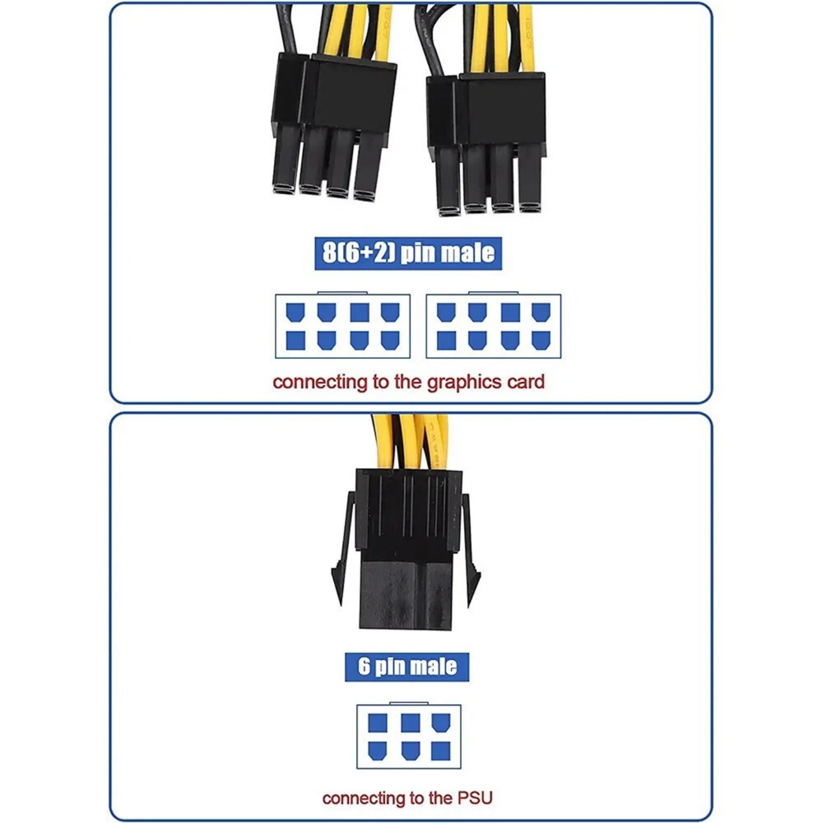 6 pin pcie to 8 pin pcie adapter connects a pcie video card with an 8 pin pcie connection to a power supply with only 6 pin pcie power connections; Check that your psu is rated to power the video graphics card