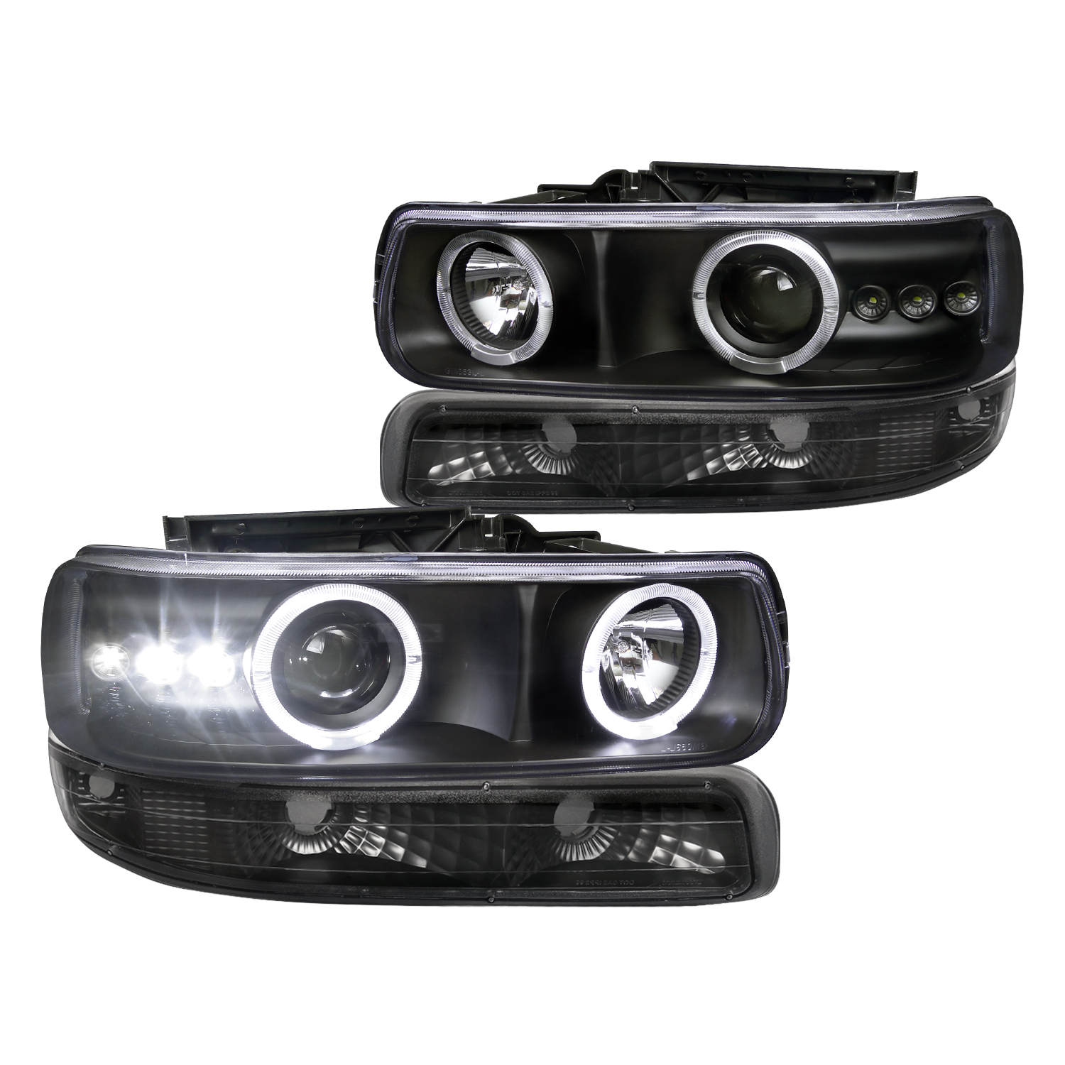 For Chevy Silverado Tahoe Suburban LED Halo Projector Headlights+Bumper Lamps Bl