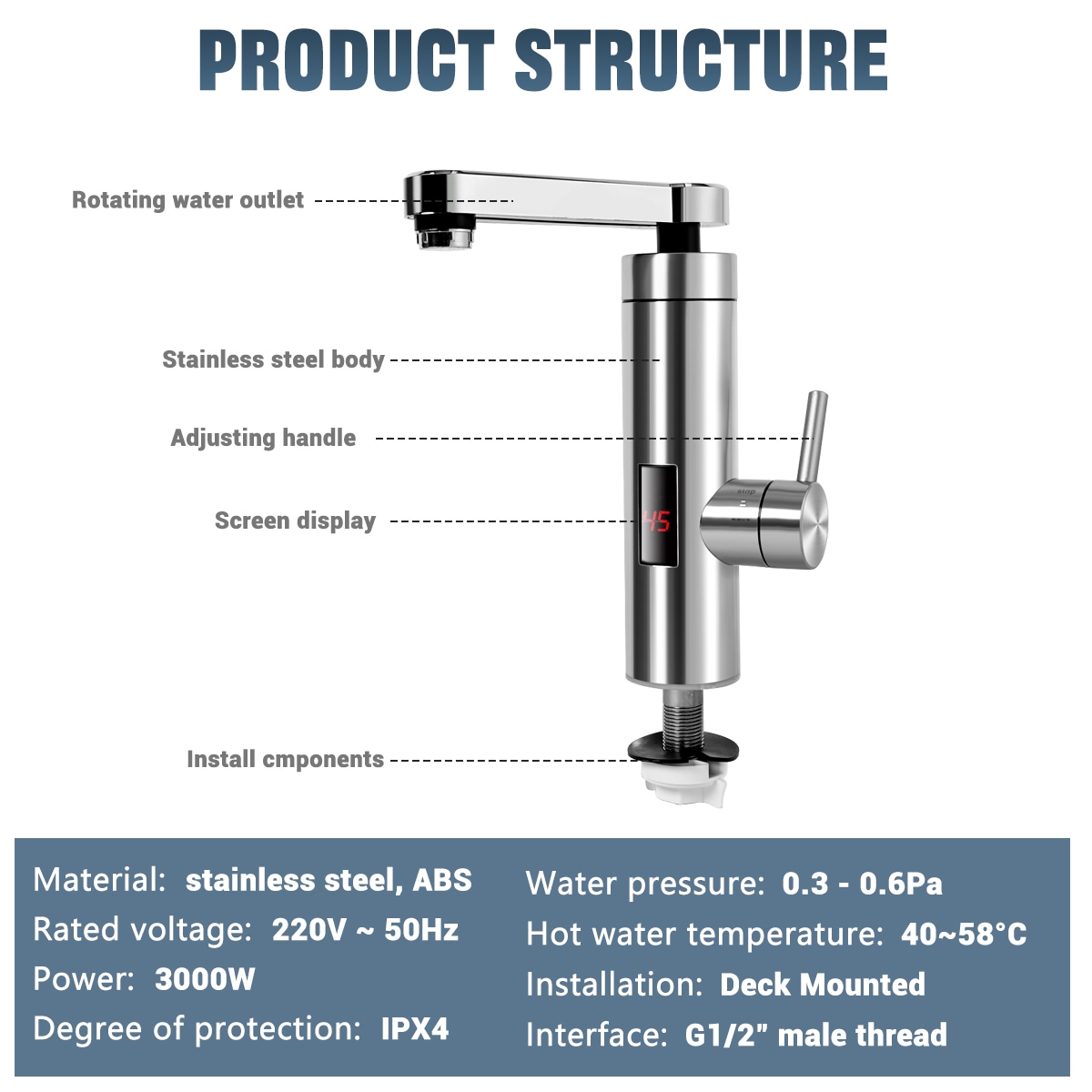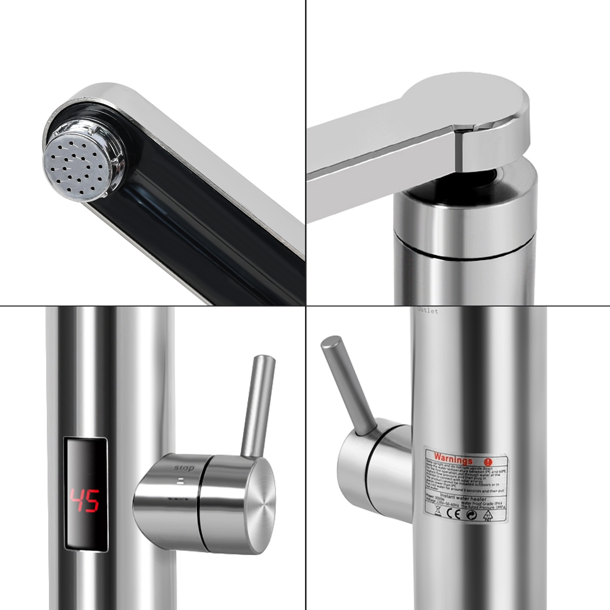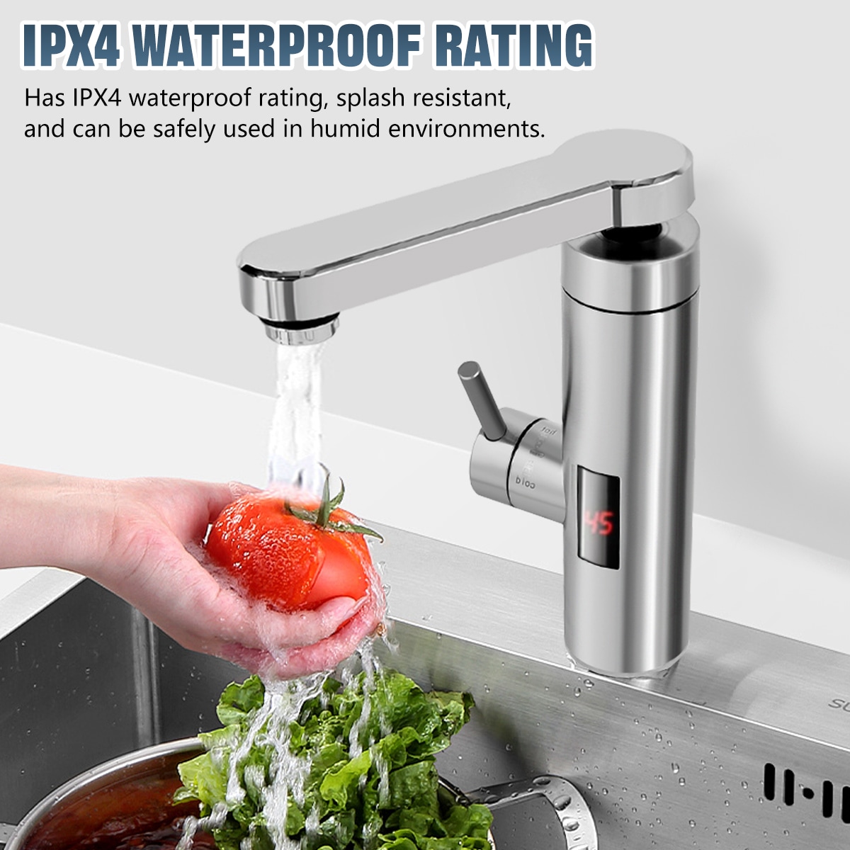 Design: With an IPX4 waterproof rating, this heating water faucet is