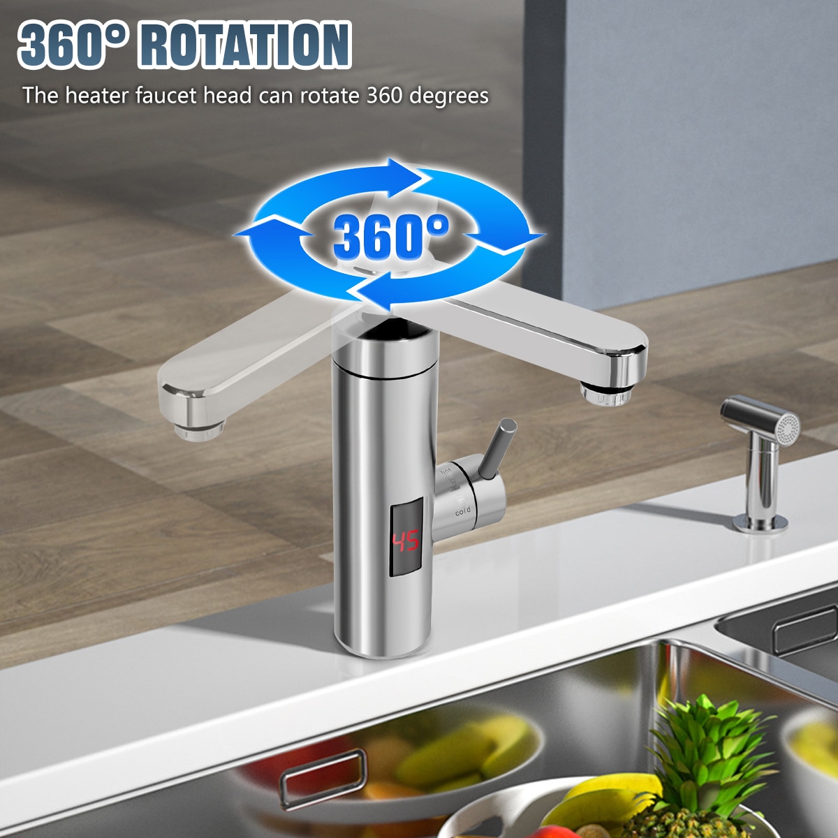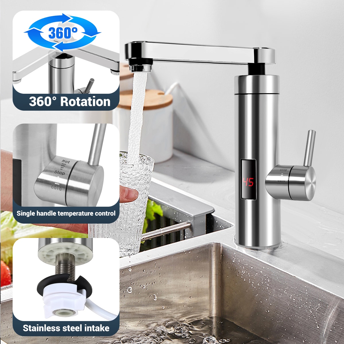 Rotation: The heater faucet head can rotate 360 degrees, allowing you