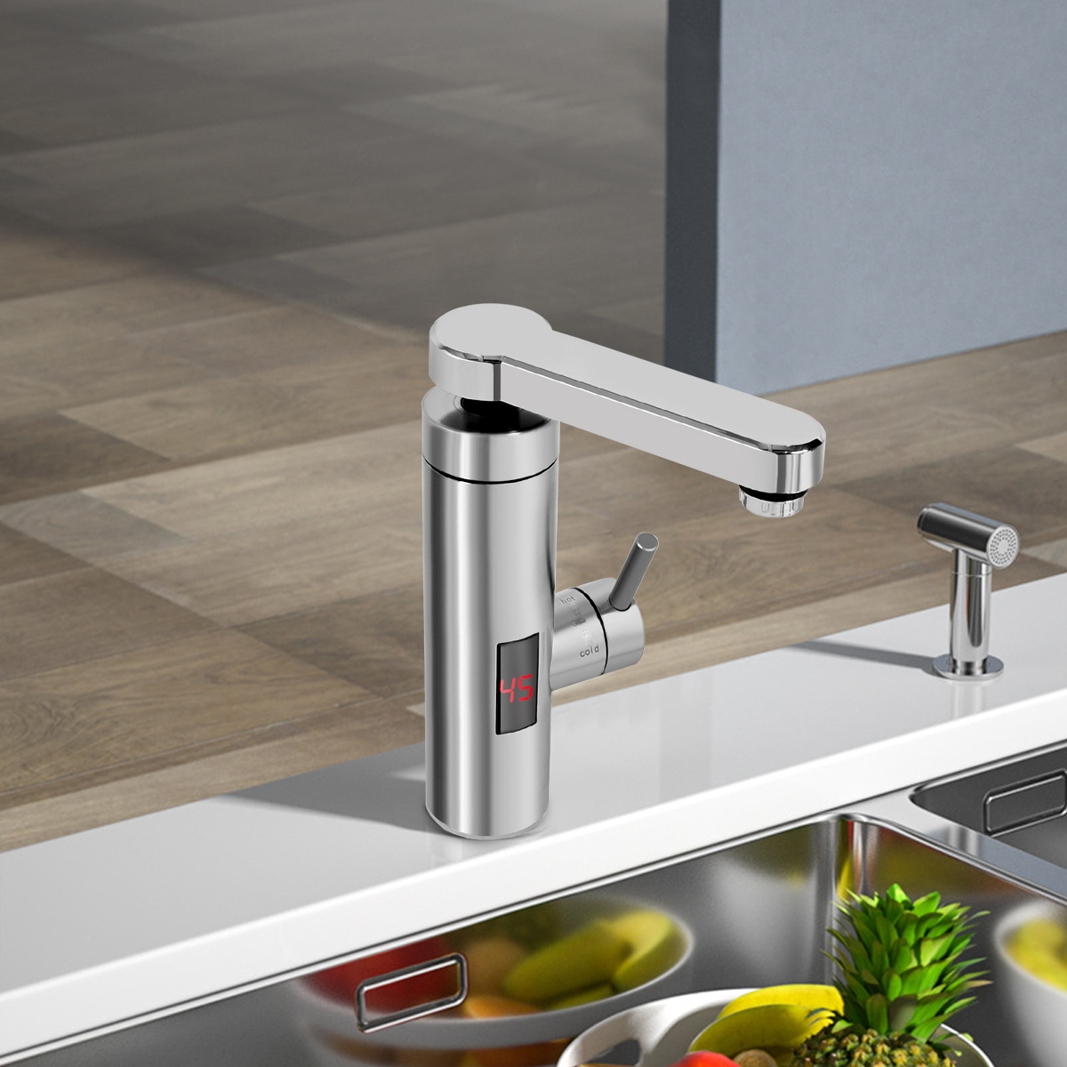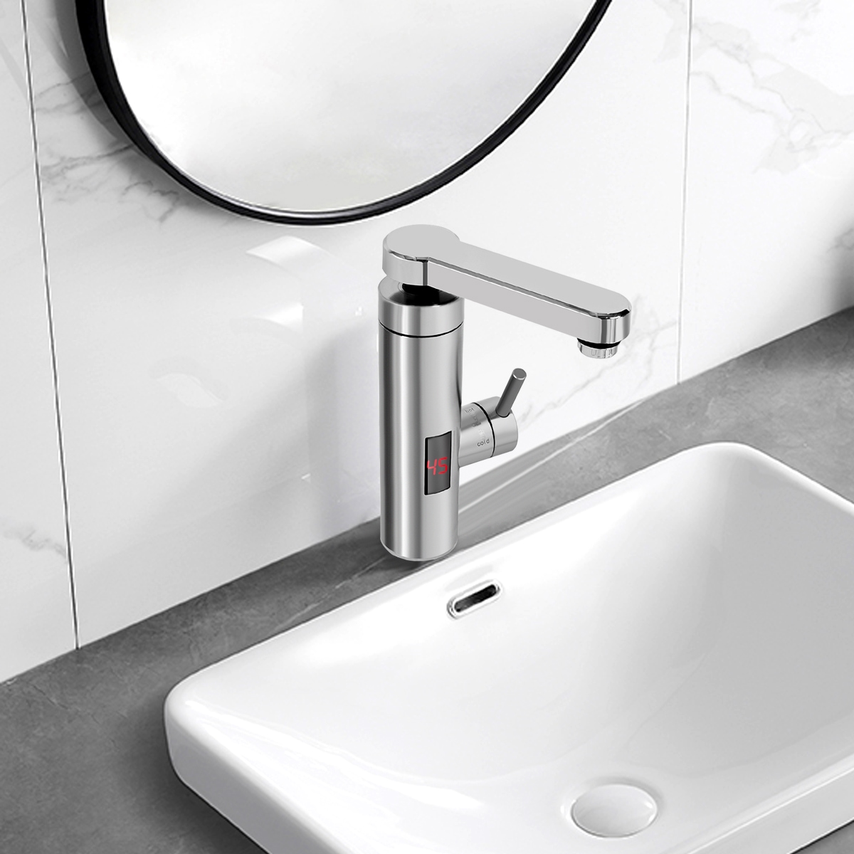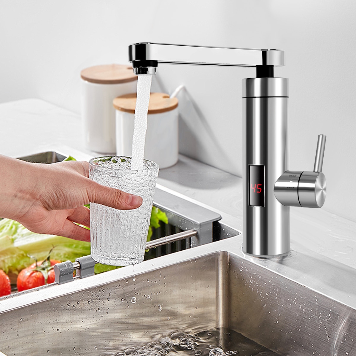 water storage, no need for preheating. LED temperature display,