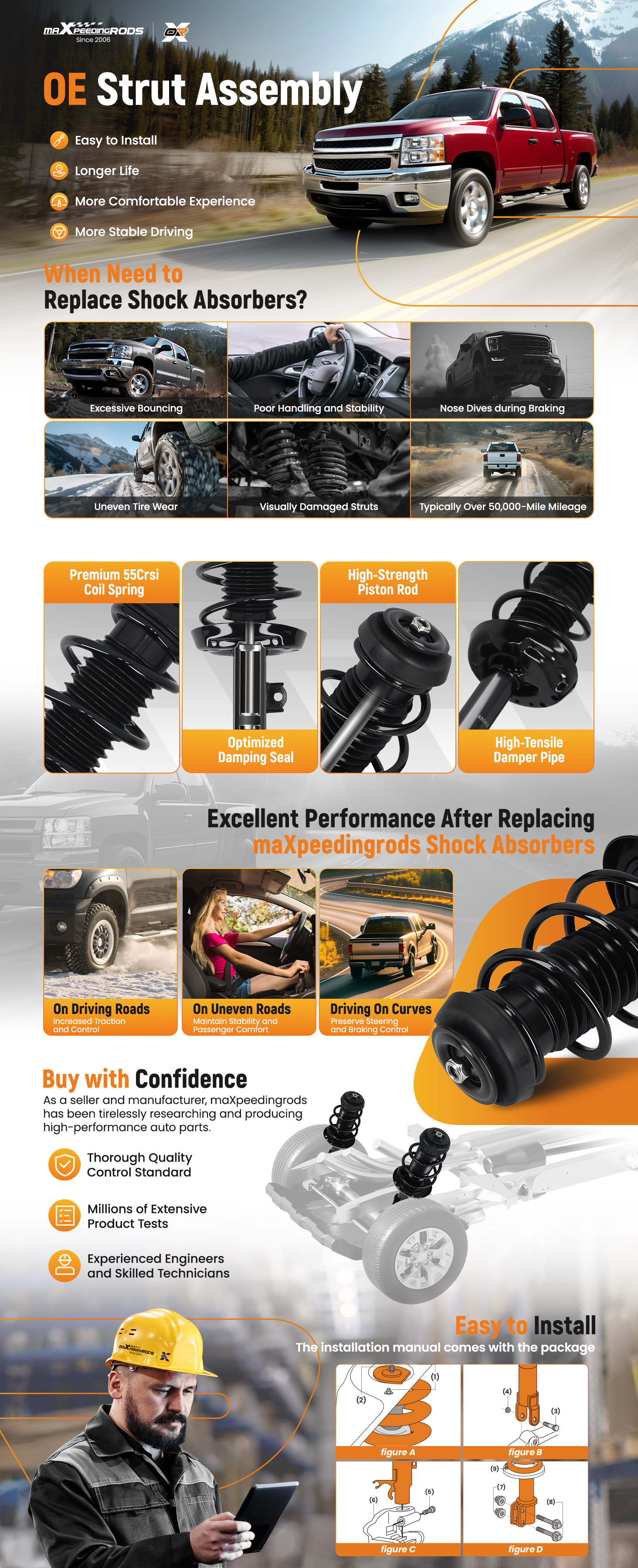 The extension and compression length of the spring are consistent with the stock strut, ensuring the same stroke as the original factory.