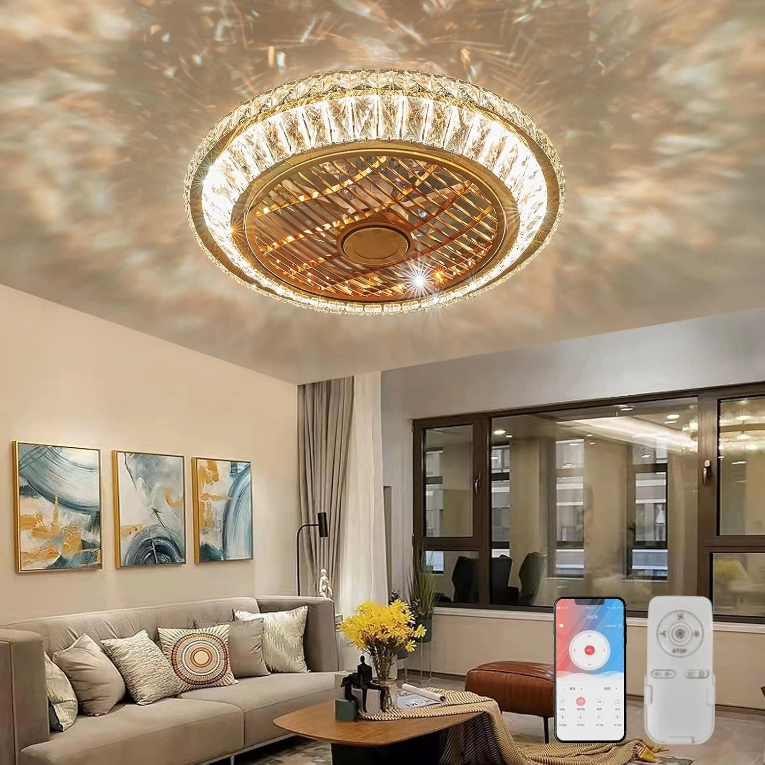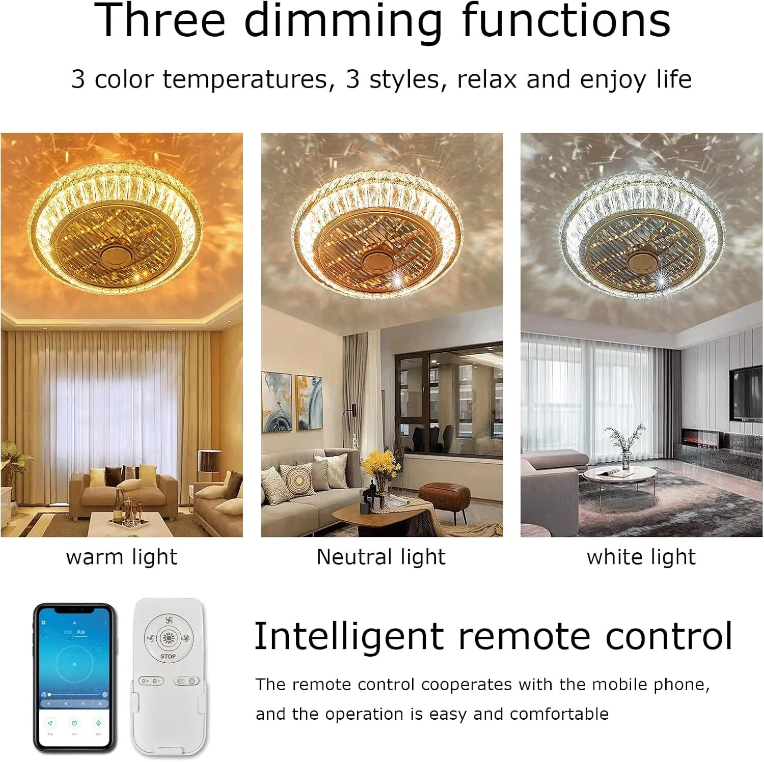 Dimmable,Energy Saving,Even Lighting,Crystal Decoration,Easy Installation,With Remote Control