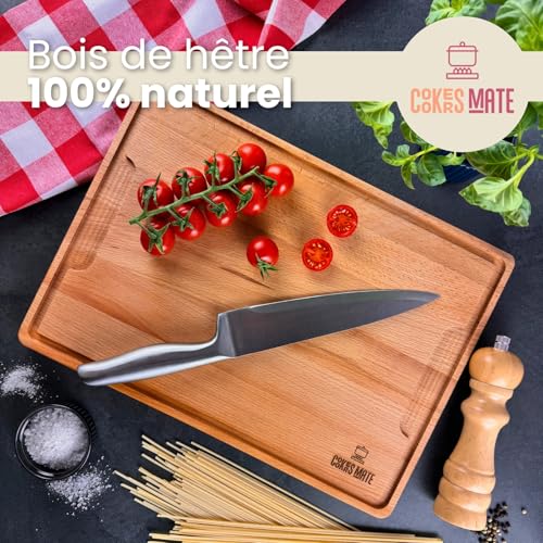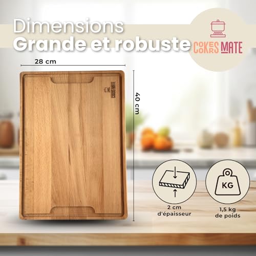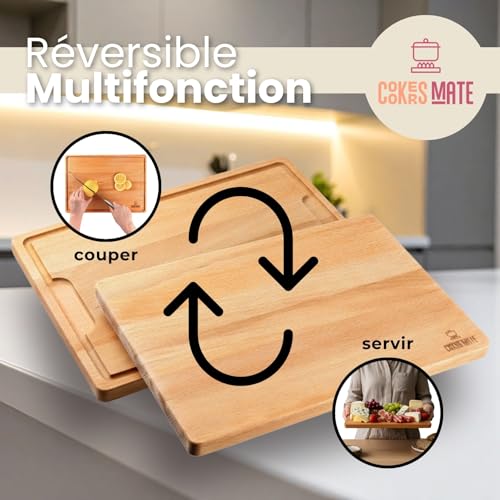 planche à découper en bois grand, planche à découper cuisine, planche à hacher, réversible avec rainure, taille XL 40x28cm, hygiénique et durable. planches à découper en bois