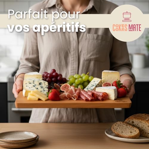 Entretien du fil des couteaux : notre grande planche à découper en bois de hêtre est dense et résistante aux coupures, idéale pour garder les couteaux tranchants plus longtemps. Contrairement à la planche à découper classique en bambou, le hêtre européen garantit une surface plus délicate sur les lames, alliant durabilité et protection.