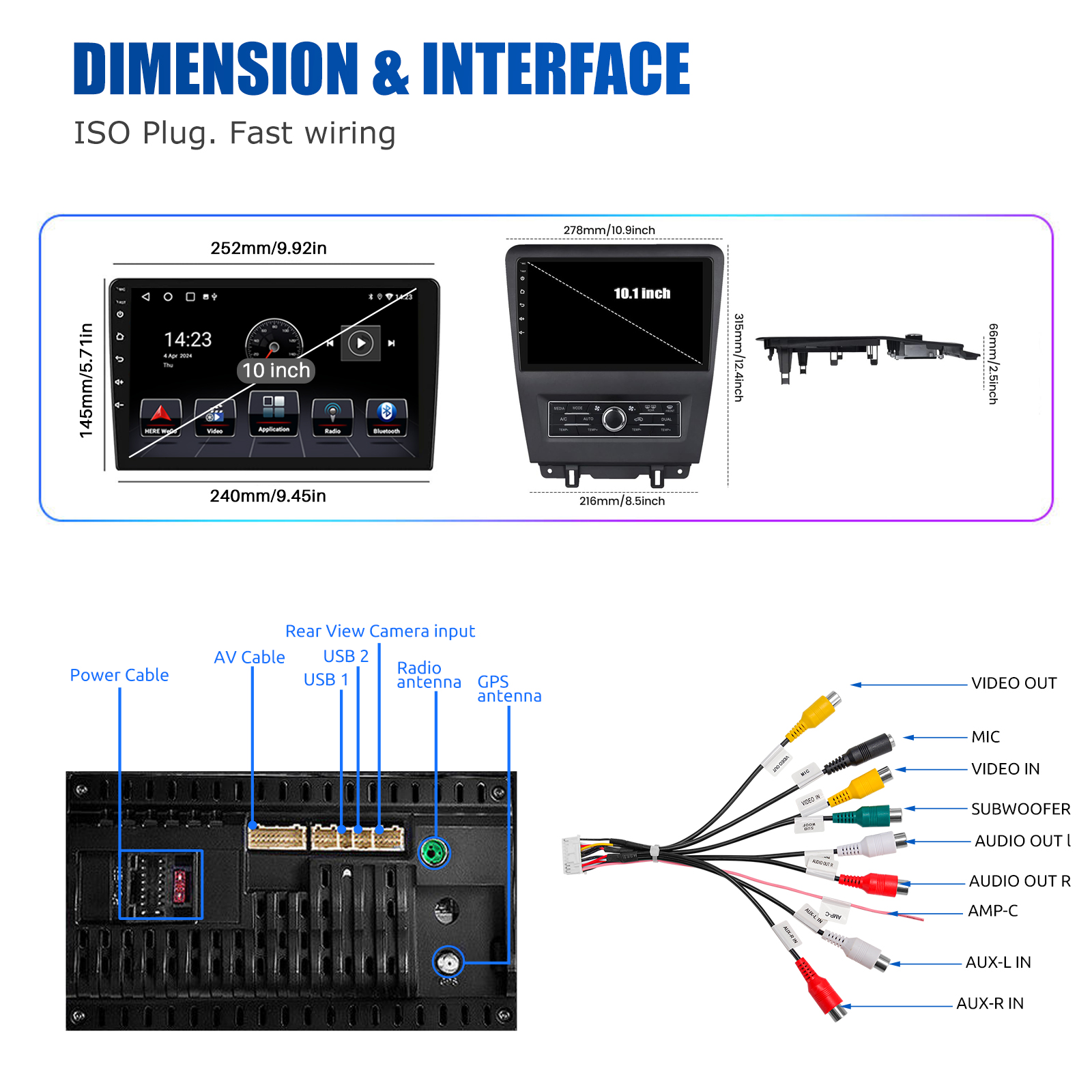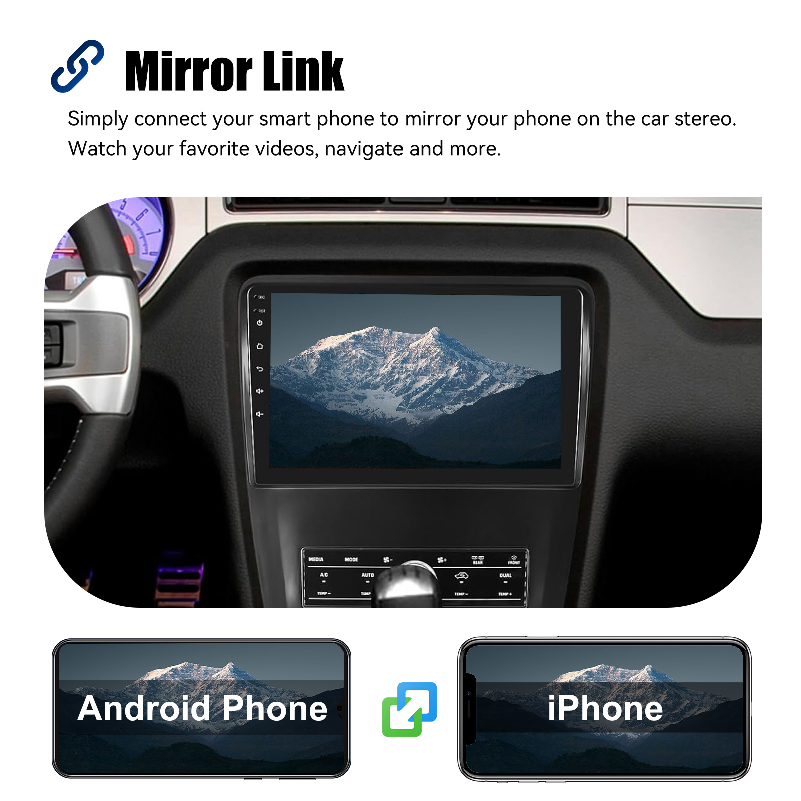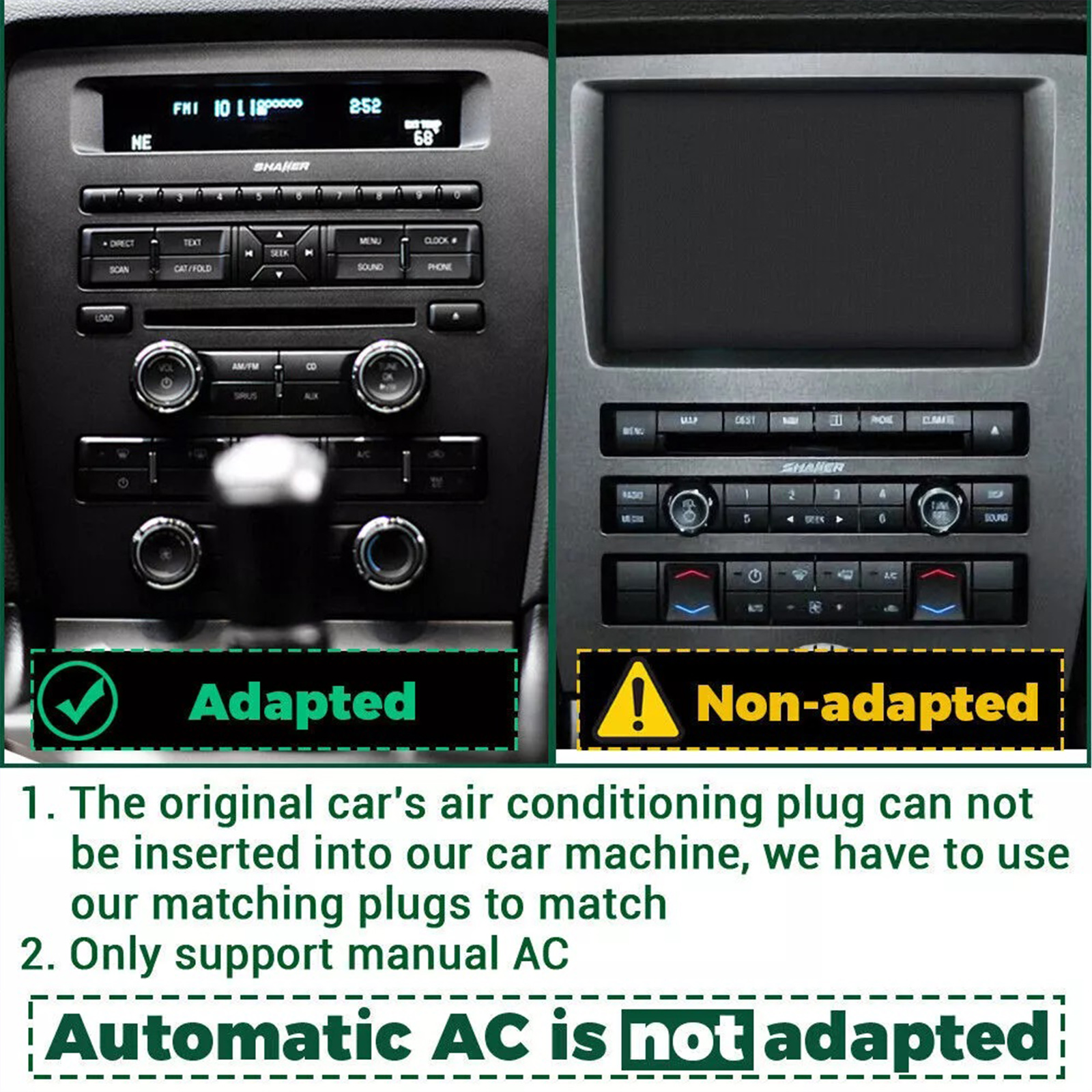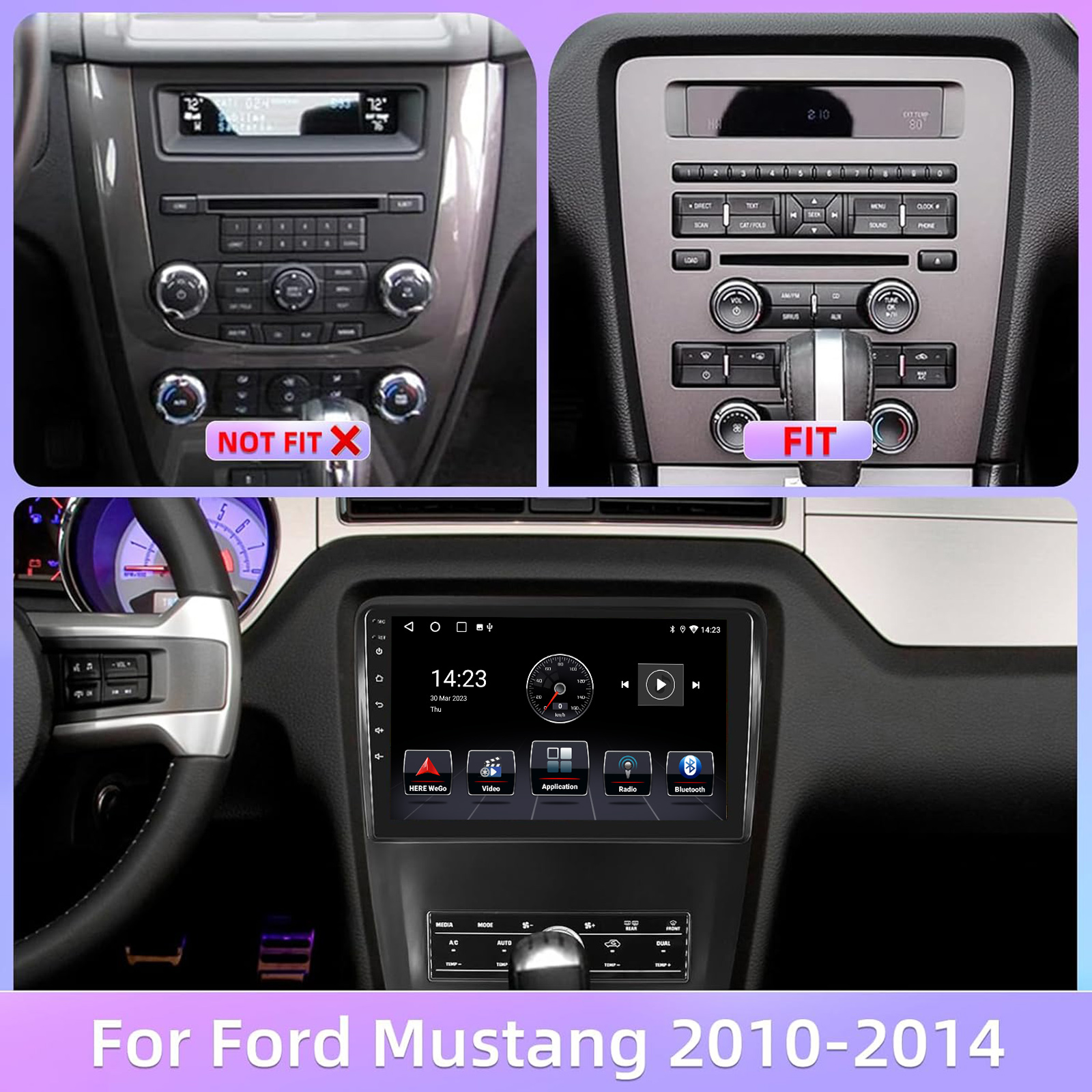 10.1 Inch Android 14 Car Radio For Ford Mustang 2010-2014 (Only Manual AC) : The Android car radio with 9" 1280* 720 HD IPS capacitive touchscreen, 4GB RAM and 64GB ROM allows you to download your favorite apps and videos, so driving is no longer boring. No extra frame, no cable change, plug and play. It comes with Canbus and supports most original functions: Steering wheel control, reverse signals and reading original computer data, etc.
