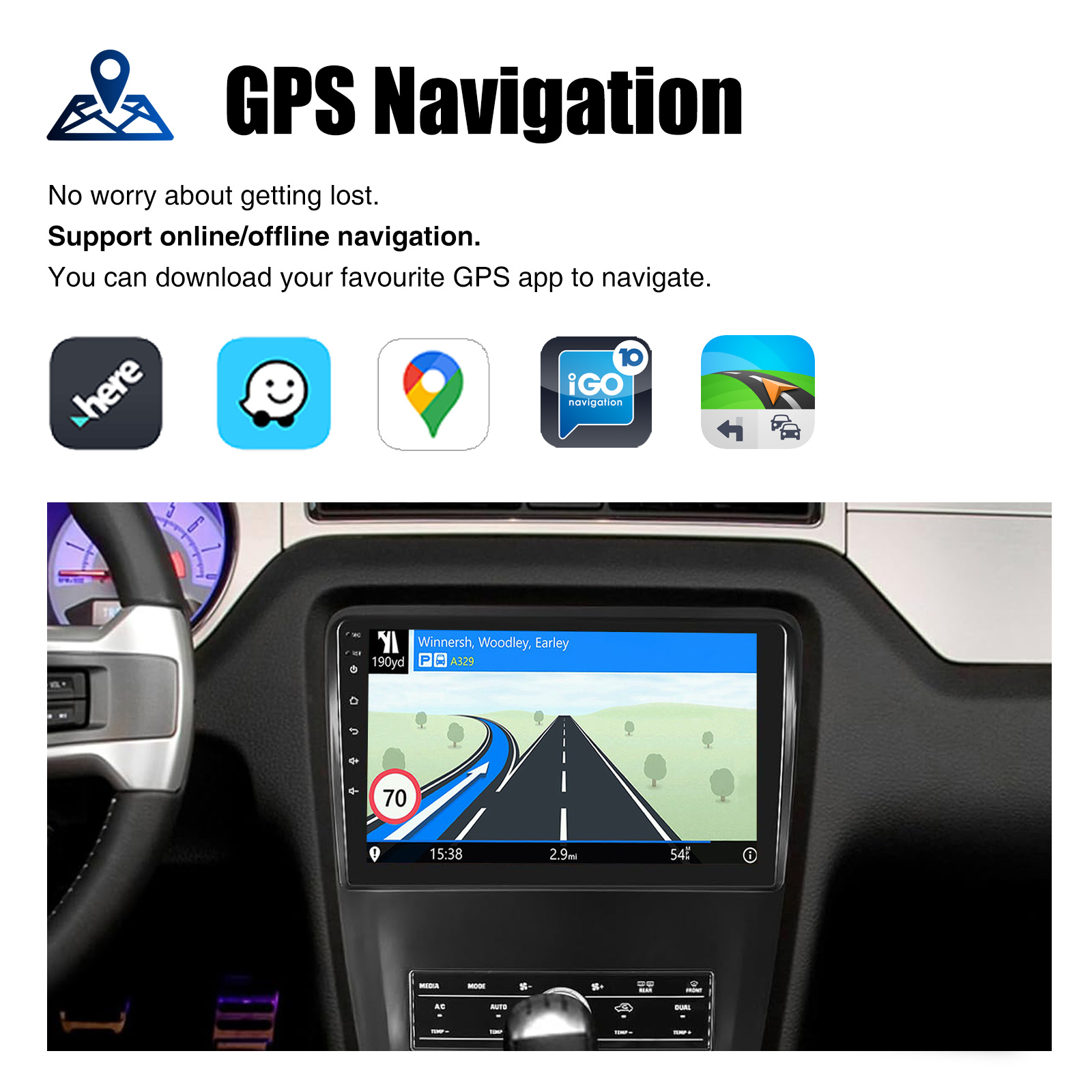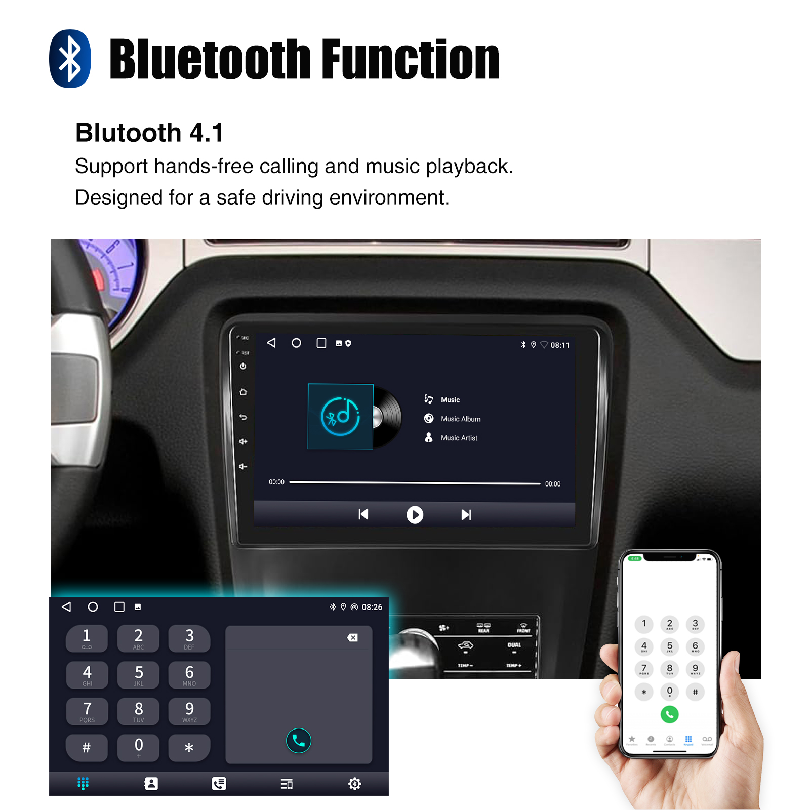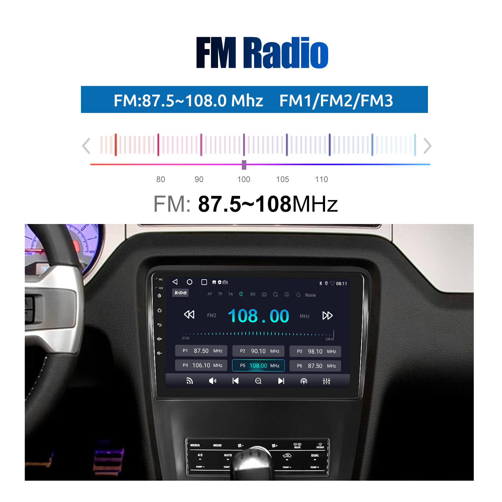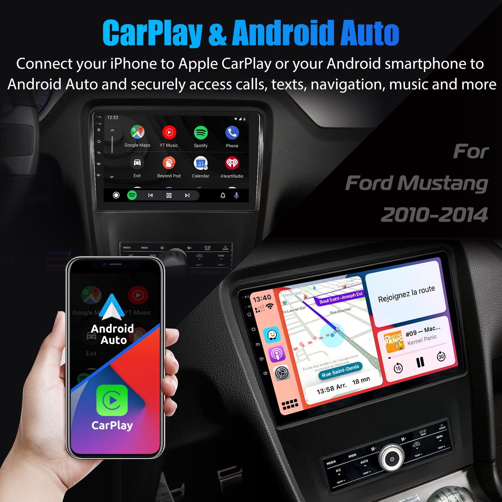 10.1 Inch Android 14 Car Radio For Ford Mustang 2010-2014 (Only Manual AC) : The Android car radio with 9" 1280* 720 HD IPS capacitive touchscreen, 4GB RAM and 64GB ROM allows you to download your favorite apps and videos, so driving is no longer boring. No extra frame, no cable change, plug and play. It comes with Canbus and supports most original functions: Steering wheel control, reverse signals and reading original computer data, etc.