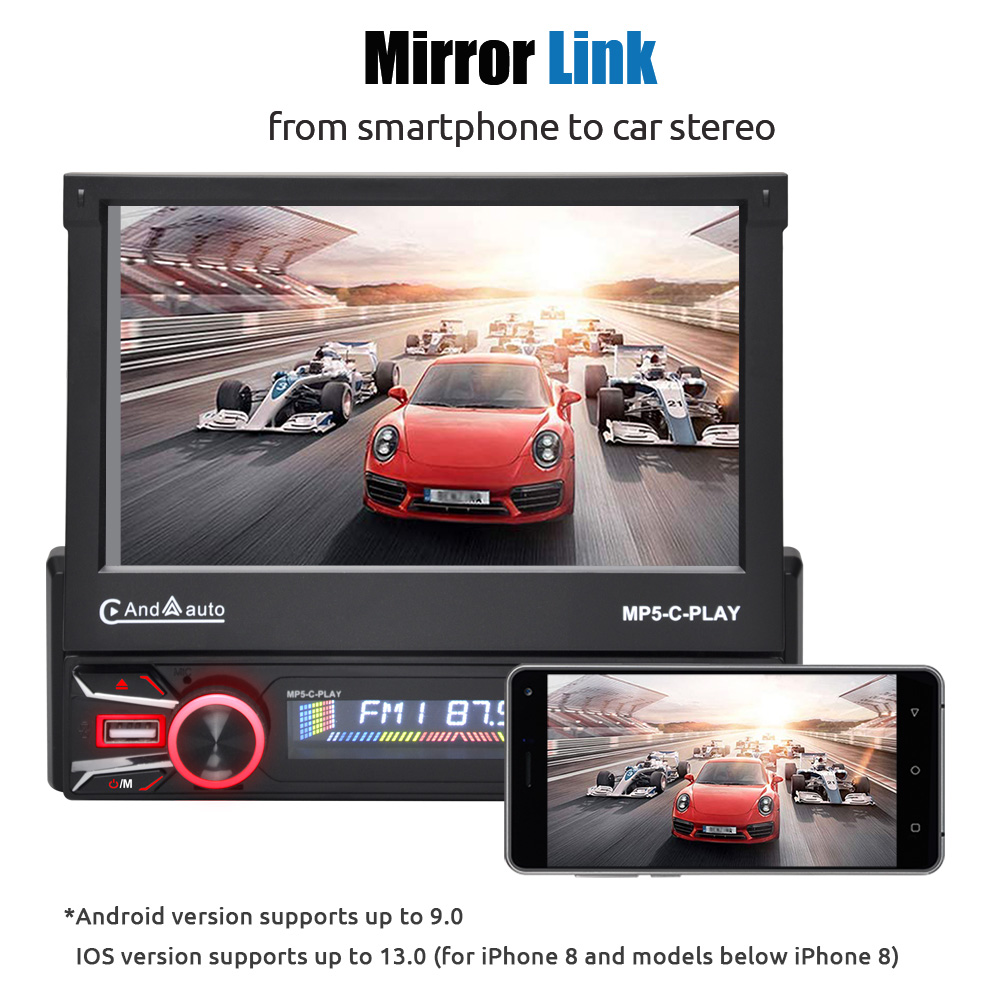 Mirror Link For Android&IOS---Mirroring your mobile phone to the car audio,then you could use GPS nagaviation or watch video,ect. IOS & Android phone can be connected via USB data cable. If you are a Android user,before connecting the mirror link,you need to set some permissions in the developer options.Support IOS system below 12 version, Android system 4.0-9.0 version.