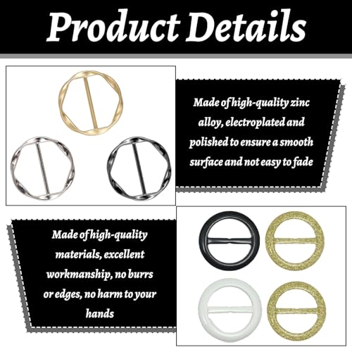 Lot de 8 clips pour t-shirt, écharpe, boucle, anneau pour écharpe en soie, clip pour t-shirt, boucle de ceinture pour femme, chemise, corset de taille, clips pour serrer les boucles de ceinture pour femme [Contenu de la livraison] : vous recevrez 8 anneaux de foulard en PVC. Ces anneaux d’écharpe ne sont pas seulement adaptés pour serrer les vêtements, mais peuvent également être utilisés pour nouer des châles ou comme boucles de ruban. Vous pouvez utiliser ces anneaux d’écharpe en fonction de vos besoins, ils peuvent essentiellement répondre à vos besoins. Matériau durable : ces pinces à t-shirt sont fabriquées en alliage de zinc de haute qualité, ne se cassent pas et ne se déforment pas facilement et sont durables. Les bords du clip de chemise en métal sont polis, lisses et plats pour un port confortable. Grâce au processus de galvanoplastie et de polissage multicouches, l’apparence est exquise. [Application] : notre clip d’écharpe peut contenir des écharpes, des chemises, des ceintures, des ceintures de vêtements et des chapeaux. C’est aussi une belle décoration. Très approprié pour assortir différents styles de vêtements. Aide à resserrer la taille des vêtements. Pratique à utiliser : l’anneau de nœud Twist T est facile à utiliser. Il vous suffit de passer l’écharpe ou les vêtements à travers un trou dans l’anneau d’écharpe, puis de le retirer d’un autre trou, de le glisser et de le fixer dans la position souhaitée et vous pouvez créer différentes formes pour les écharpes, chemises, jupes, etc. Décorez vos vêtements élégamment pour les mariages, fêtes, danses, banquets et occasions privées. Transformez les t-shirts amples en différents styles. [Cadeau spécial] : la boucle d’écharpe en soie peut être utilisée par vous-même ou offerte à des collègues, de la famille et des amis. Il peut souvent aider elle ou lui à fixer des écharpes, des coins de vêtements, des chapeaux décoratifs, des ceintures, etc. qui doivent être réparés au quotidien.