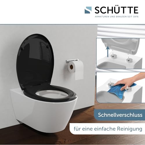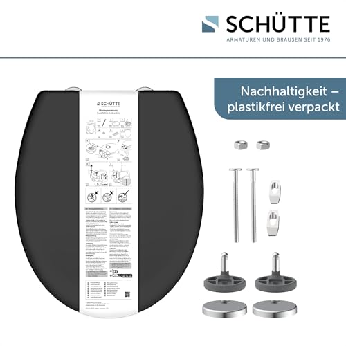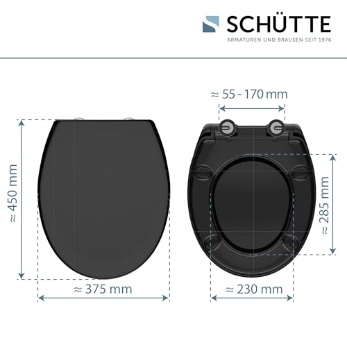 SCHÜTTE Abattant WC en Duroplast avec système d’abaissement automatique, compatible avec la majorité des cuvettes WC, Noir