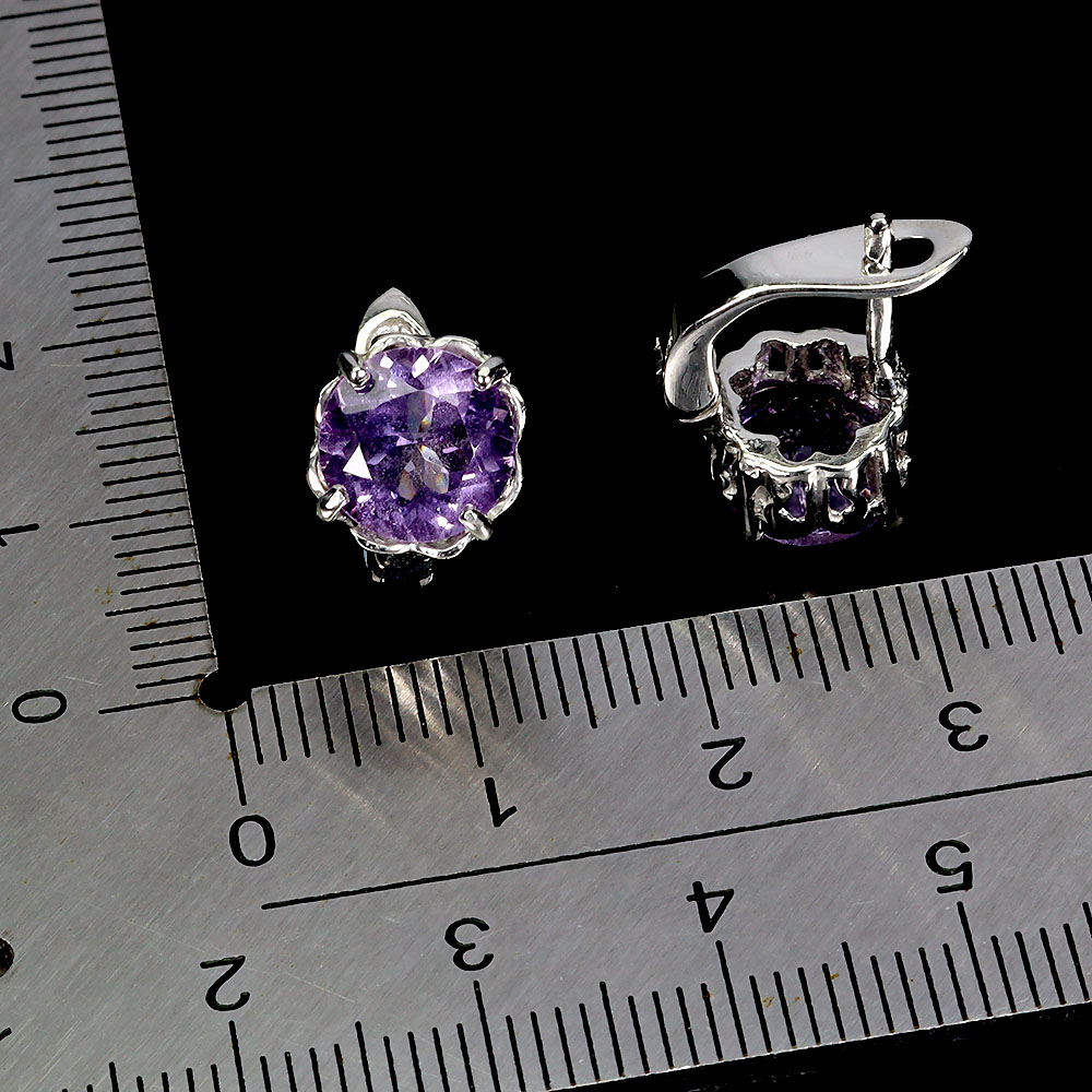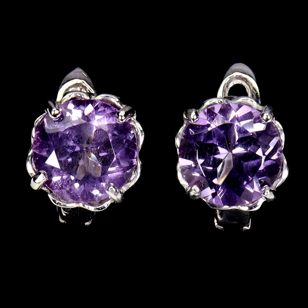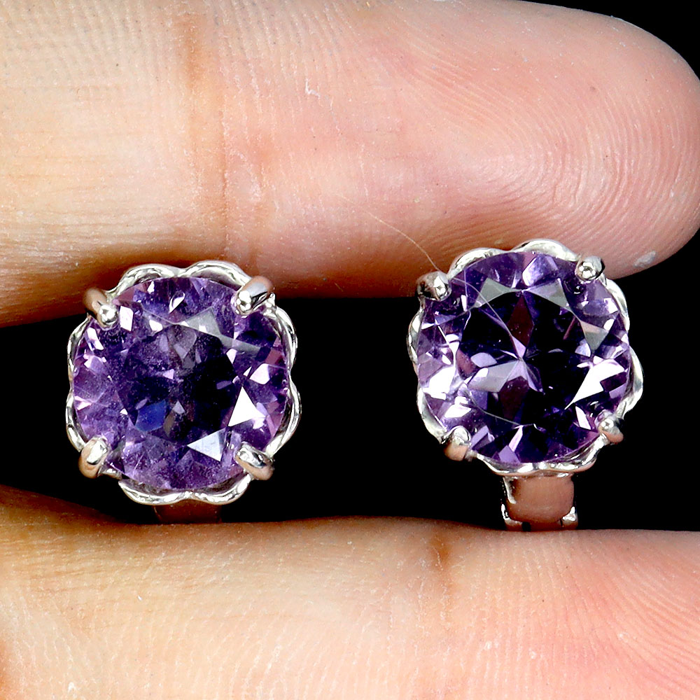 925 Sterling Silver Earrings Round Amethyst 8mm Natural Gemstone Jewelry