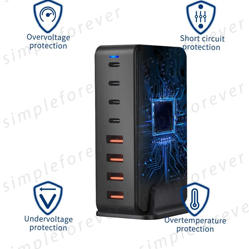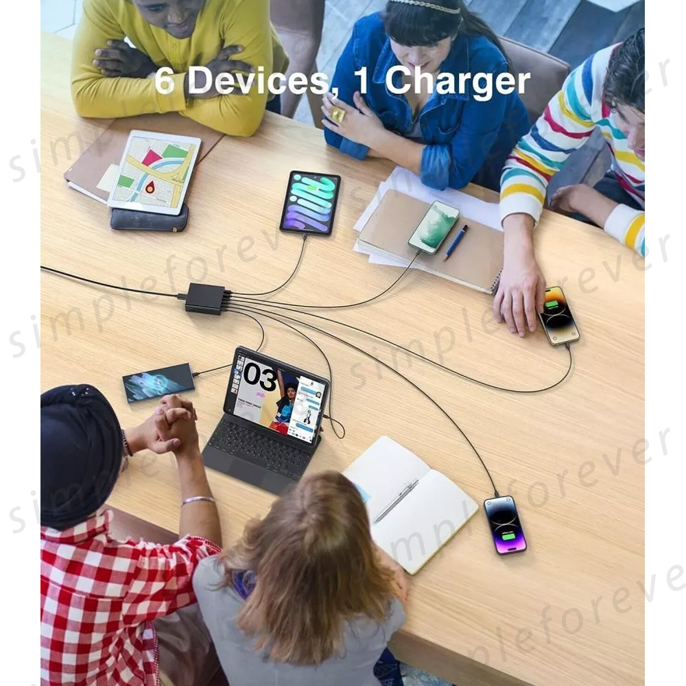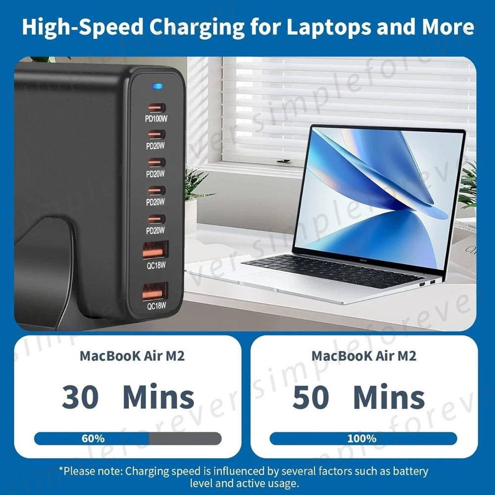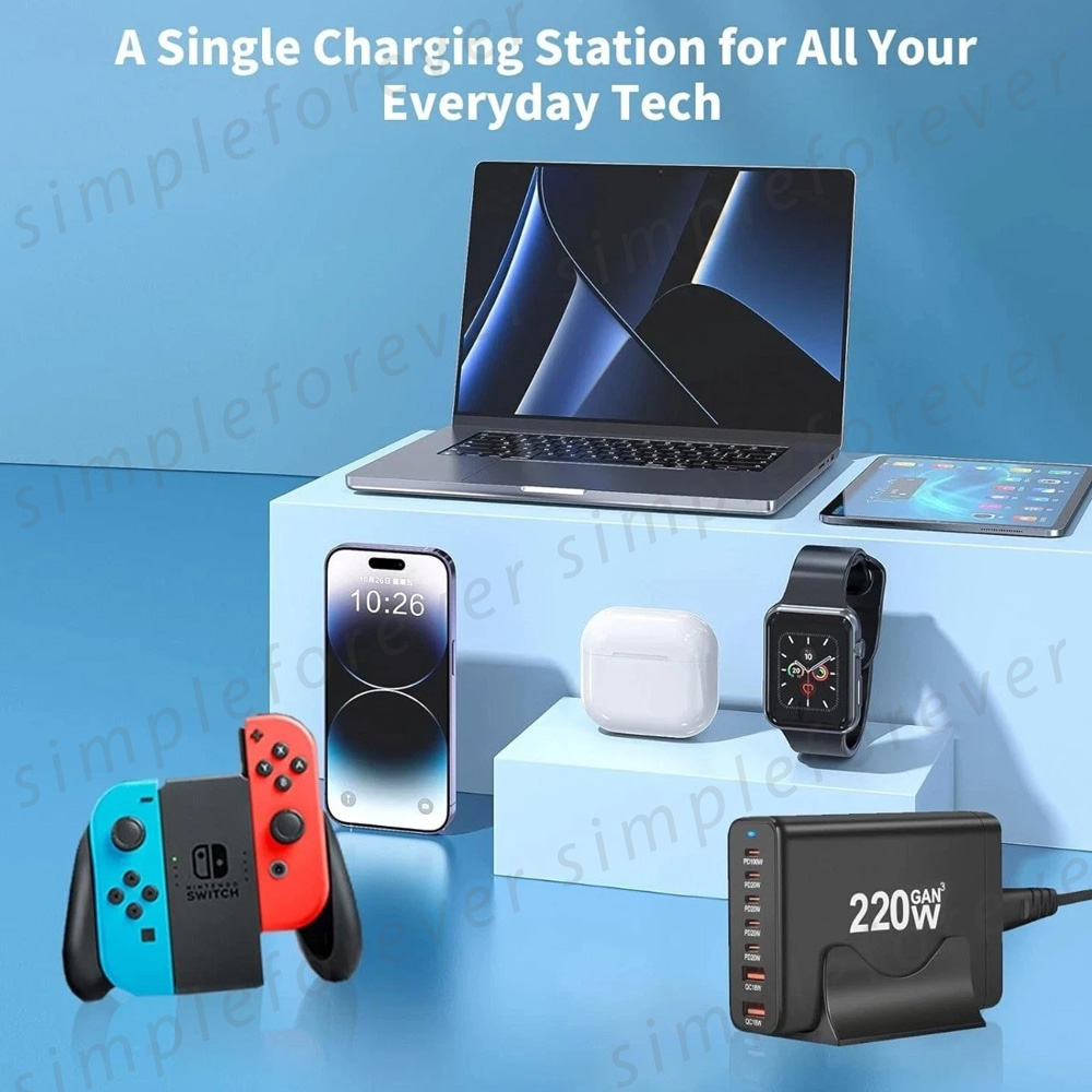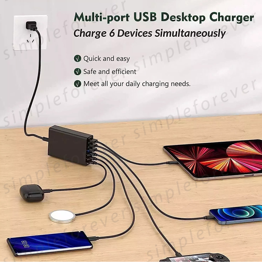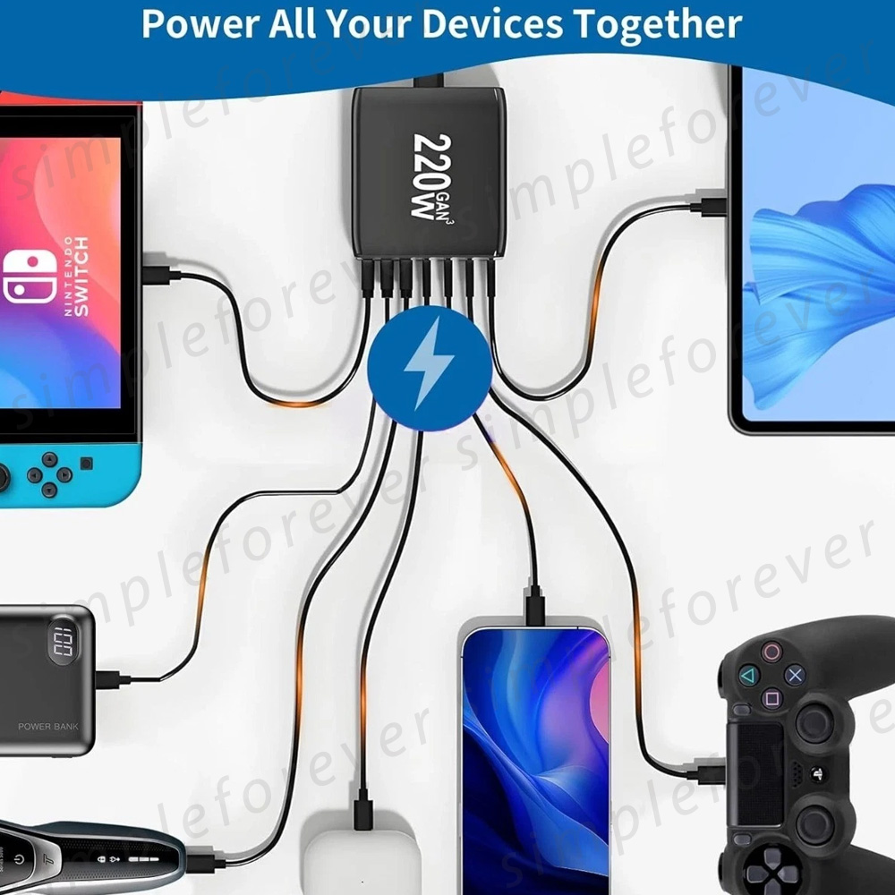 200w Gan USB C Fast Charging Station 6 Ports Pd Type C Charger For iPhone Laptop