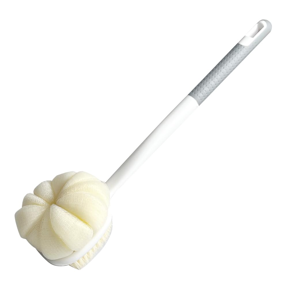 Shower Body Brush Soft Bristles and Loofah Long Handle Back Scrubber Grey