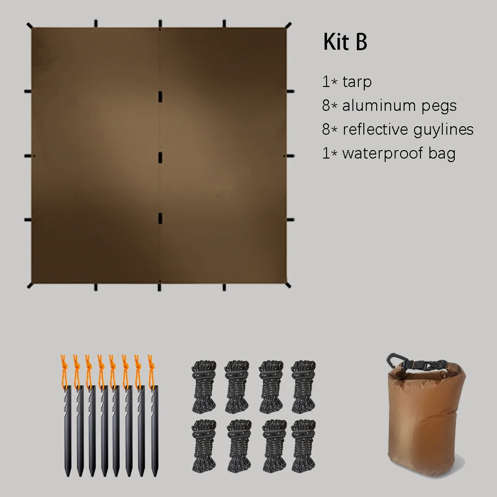 Equipped with 19 webbing attachment points and 8 gun-color copper eyelets,it allows you to set up a variety of shapes, including simple tents, temporary shelters, portable sunshades, and windbreak screens.
