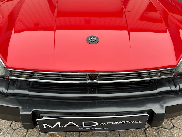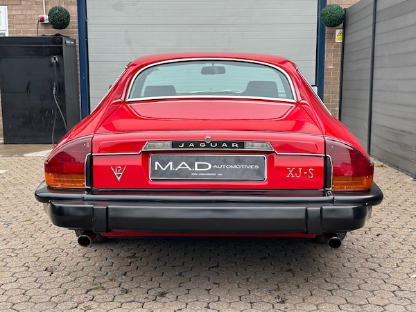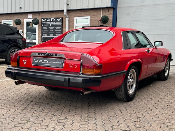 Not a lot of passion was put into promoting the XJ-S 1975-80 by BL as it stumbled year by year into oblivion, which by coincidence was the life span of the first incarnation of the XJ-S, now commonly referred to as the Pre -HE XJ-S.Many Jaguar enthusiast consider the Pre-He XJ-S to be the purist version of the XJ-S which by 1996 had at least 10 significant variants covering body, engine type and capacity size. The pre HE (higher efficiency) models were not chasing economy nor emission reductions and newer models from 1981-96 invariably got heavier, lost power due to increasing emission legislation and reduced aerodynamic purity and to many driving the first version is the best XJ-S driving experience. 14,500 Pre HE cars were made for worldwide consumption between 1975-80, with a good 60% going overseas, and according to figures, only around 60 pre HE V12's still remain licenced in the UK. Subsequently these cars rarely come to market. This beautiful example, just arrived in to stock at MAD Automotives has been the subject of a full restoration including a bare metal re spray in Jaguar Signal Red.Prior to the re-paint a huge amount of work was carried out to ensure that the mechanicals were as good as the bodywork. The 5.3 V12 engine had perfect compressions, did not leak fluids and performed faultlessly so no internal work was required, however a new water pump was fitted along with a new alternator and an aluminium radiator. The ignition system was replaced with a modern electronic ignition system (cost £1000) new ignition leads and 12 iridium spark plugs were installed. A service was then carried out and a custom made stainless steel exhaust was fitted. The front subframe was removed from the car and fully refurbished, all suspension and brake components were replaced with new parts, including, Discs, Calipers, Pads, Shock absorbers, Springs, wheel bearings, anti roll bar links and track rod ends.At the rear, the cradle was removed and fully refurbished and powder coated. Again, all components were replaced including, Discs, Calipers, Pads, Shock absorbers, springs, and handbrake cables. The Black leather interior is lovely and original with exception of the carpets and headlining which were both replaced. The body panels were mostly rust free but any corrosion was treated and panels replaced as necessary including the lower rear wing sections, the lower rear valances and the front lower valance sections, both front wings were replaced with totally solid second-hand items. The bodyshell was stripped to bare metal and then repainted in Jaguar Signal Red. The wheels were fully refurbished and fitted with correct Pirelli tyres.All this work was carried out 5 years ago and the car has had very little use since still presenting exceptionally well. The car drives beautifully and the pre HE model is arguably the most desirable and appreciating XJ-S model.