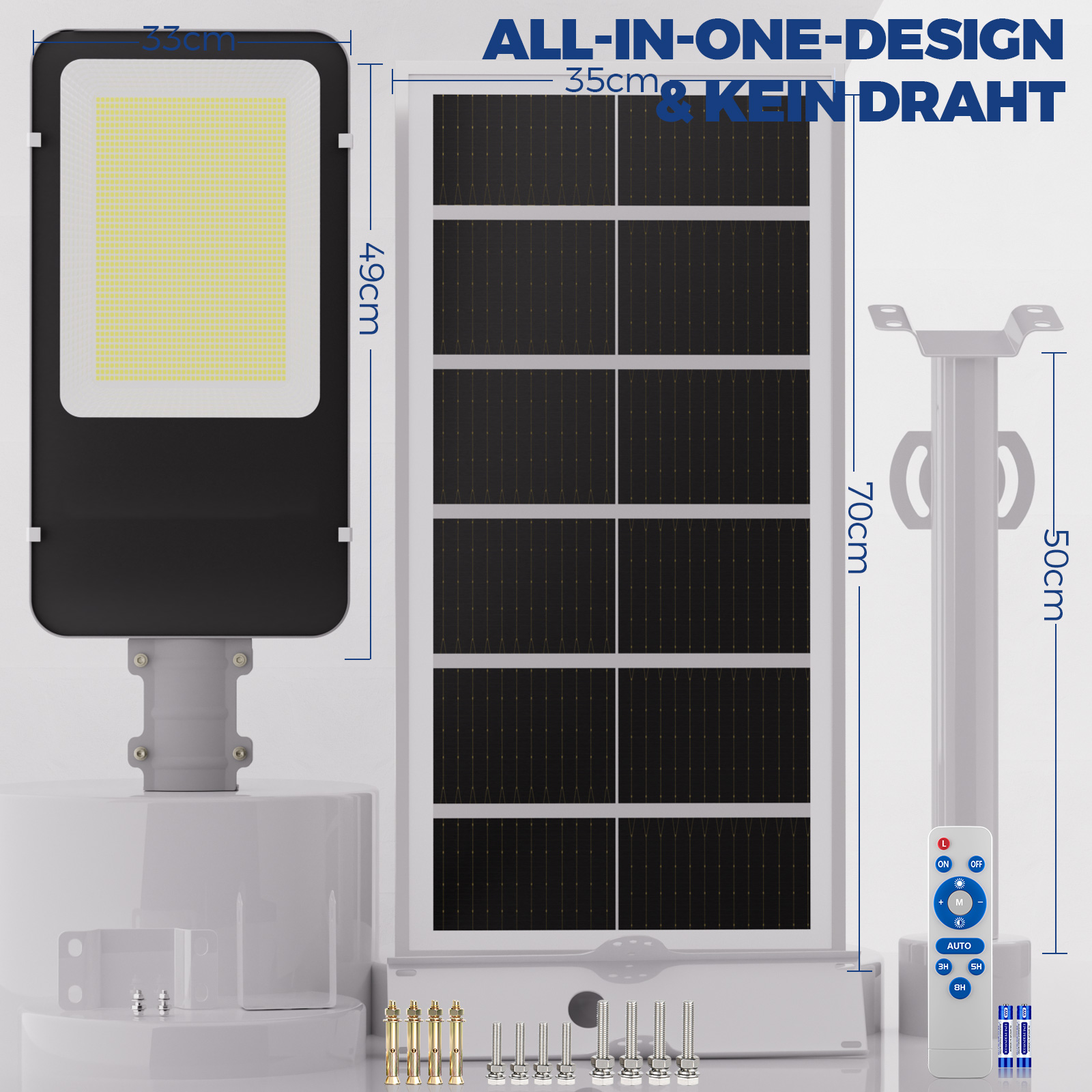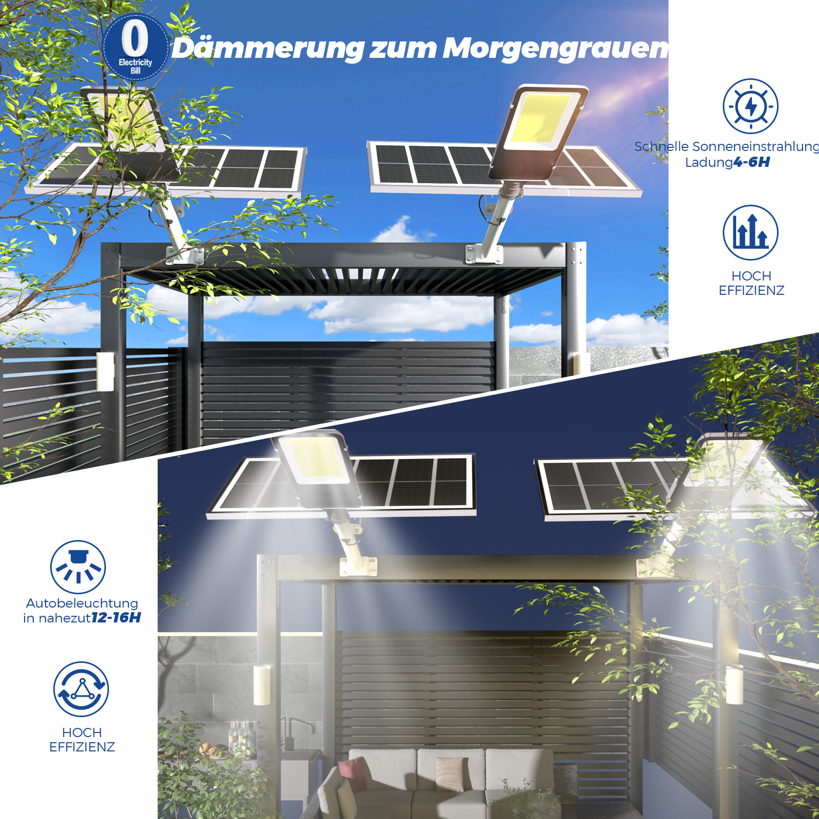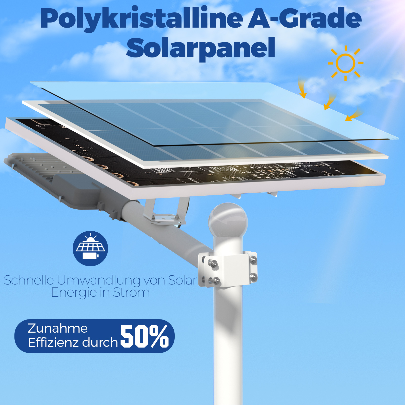 Robuste Technik & Langlebige Energie:Ausgestattet mit hochwertigen 2835 SMD-LEDs, einem langlebigen LiFePO4-Akku (Lithium-Eisenphosphat) und einer effizienten polykristallinen Solarzelle für zuverlässige Beleuchtung Nacht für Nacht.