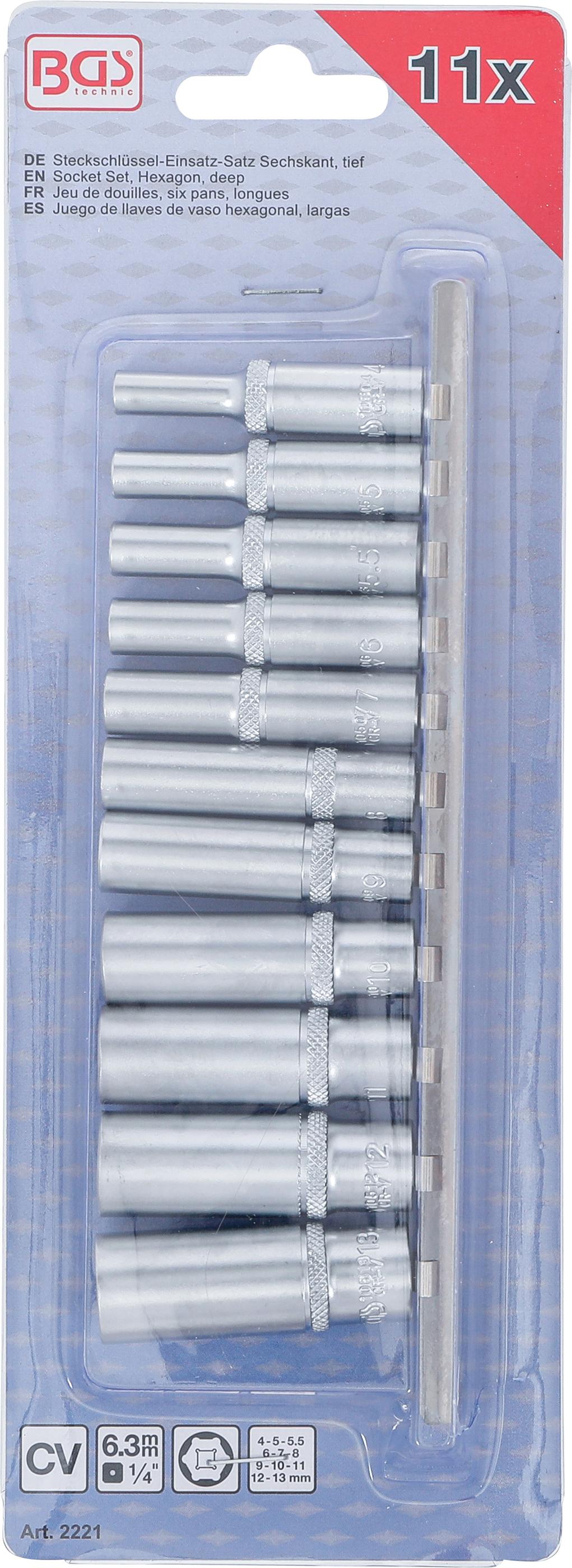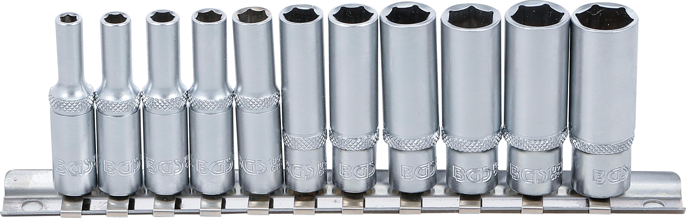 BGS Jeu de douilles, six pans, longues | 6,3 mm (1/4") | 4 - 13 mm | 11 pièces