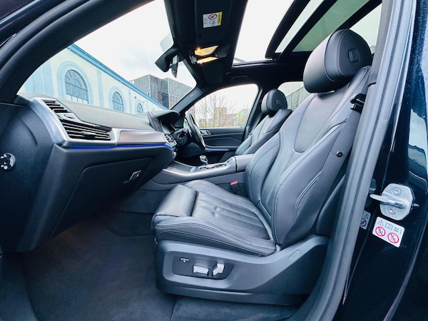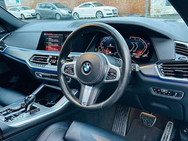 This 2019 BMW X5 30d M Sport boasts a clear vehicle history, offering you peace of mind. This impressive four wheel drive SUV is powered by a 3.0L Euro 6 diesel engine, delivering a compelling blend of performance and efficiency. The M Sport trim enhances its sporty appeal, complemented by striking 21 inch M Light Y Spoke Style 741 M Bicolour alloy wheels fitted with run flat tyres. Inside, you'll find the desirable Sky Lounge Panoramic glass sunroof, creating an airy and open cabin atmosphere.The X5 30d M Sport is equipped with a Technology Package, which includes a Head Up Display for convenient information access, a 360 degree camera system for effortless parking, and a premium branded sound system for an enhanced audio experience. Further enhancing comfort are heated seats for the driver and front passenger, part of the M Sport Plus Package. This vehicle also benefits from a low insurance group, making it an economical choice. Its generous boot space is ideal for families and adventurers alike, while the 0 to 62mph acceleration in just 6.5 seconds demonstrates its dynamic capability, setting it apart from many other vehicles in its class.