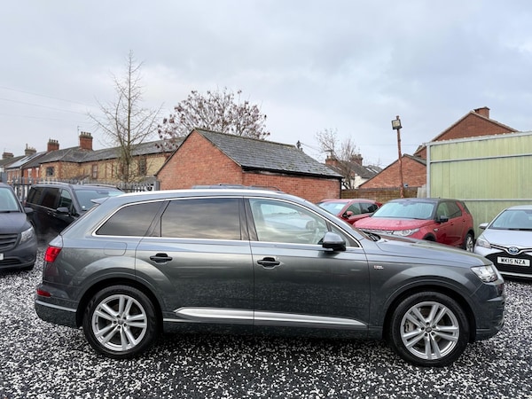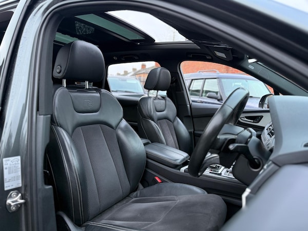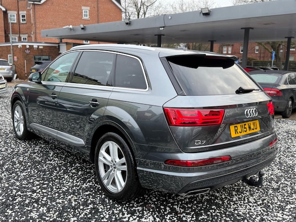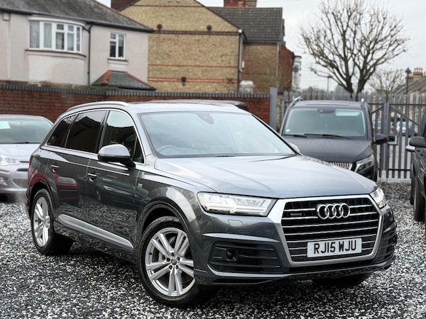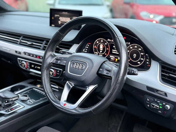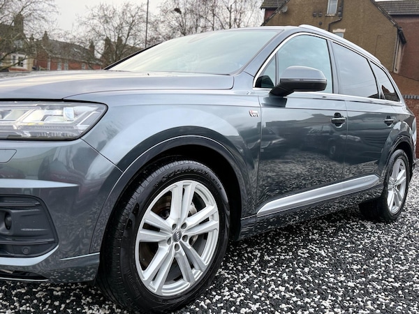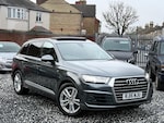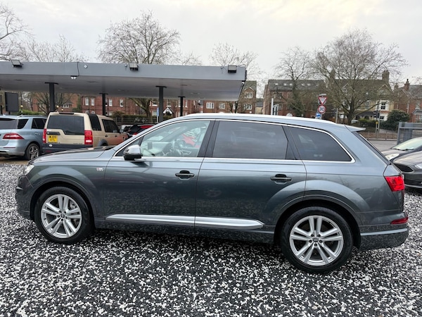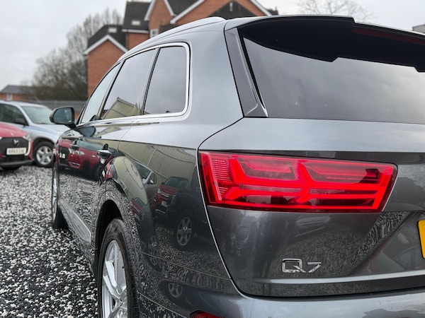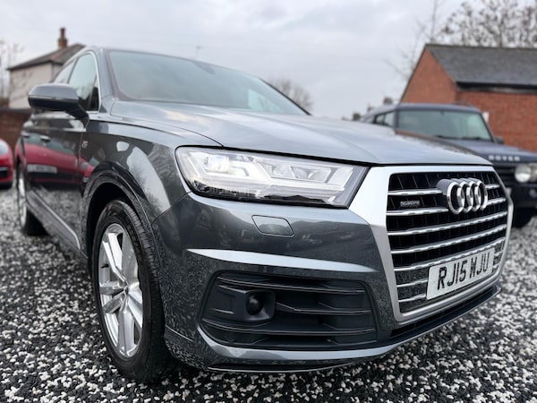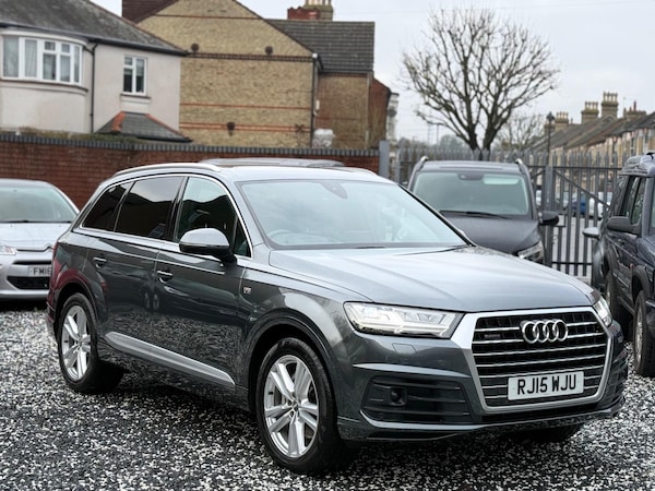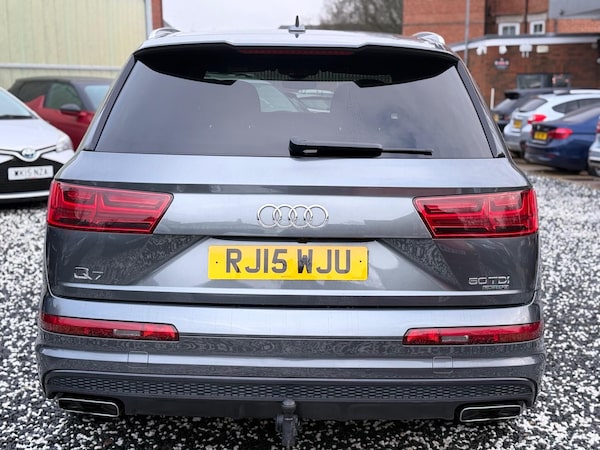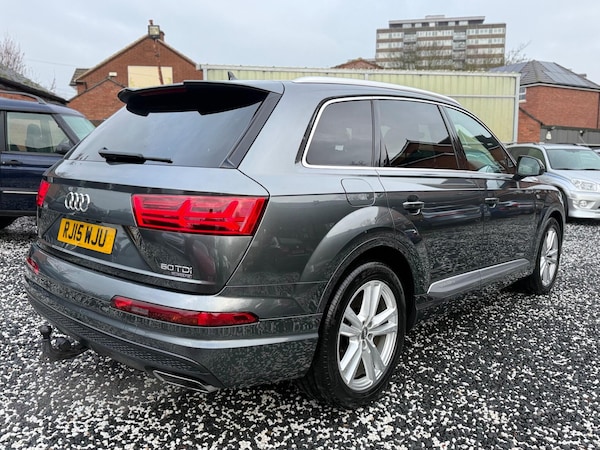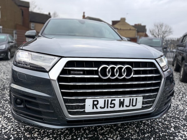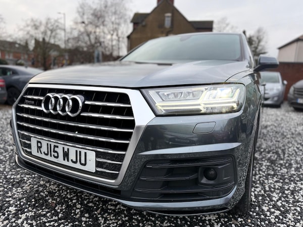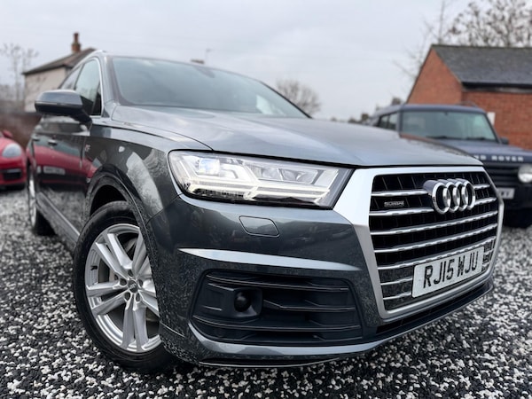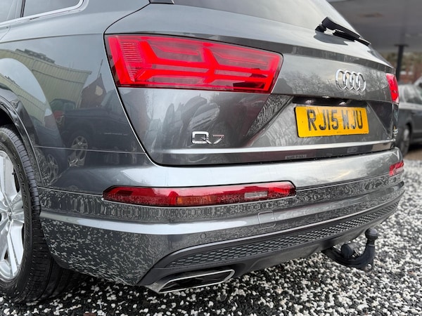 MEGA SPEC, OVER £12,500 OPTIONAL EXTRAS, Boasting exceptionally low mileage for its age, Only driven a genuine 57,000 miles from new, mot February 2027, 2 keys, Backed with a Full Audi dealer service history,, Only 2 former keepers, this 2015 Audi Q7 TDI V6 S line presents a remarkable opportunity. This four wheel drive, seven seat, powered by a potent 3.0 litre diesel engine, meeting Euro 6 emission standards. The S line trim ensures a premium experience, complemented by All Weather LED Headlights, Acoustic and Visual Parking System for the rear, Heads-up display, Lane assist, Virtual Cockpit dash, Adaptive cruise control, Front and rear heated seats, 4 - Wheel steering, Dynamic pack, Electric glass title and slide pan-roof, Folding rear tow bar, Electric rear folding seats, Electric Memory front seats, Front and rear heated seats, Factory privacy glass, Adaptive height suspension, Self park assist, Reverse parking camera, This Audi Q7 stands out with its impressive performance, achieving 0-62mph in just 6.5 seconds, indicating a more responsive drive compared to similar vehicles. Its very low mileage of 57,000 miles suggests it has been well cared for, and it sits within a low insurance group, offering potential savings. Furthermore, with a towing weight of 2800 kg, this Q7 is a capable and versatile choice for a variety of needs, Looks and drive immaculate throughout