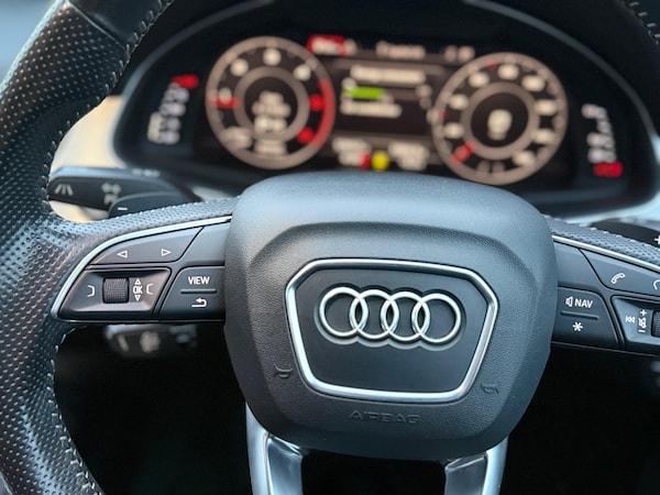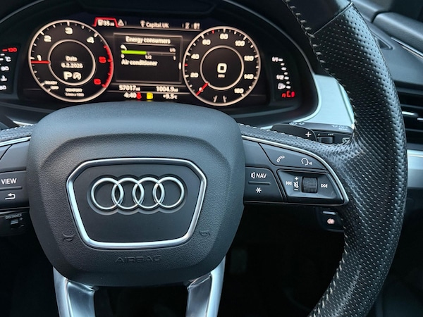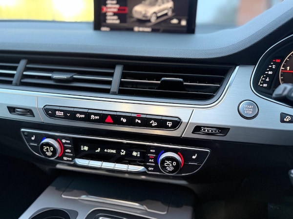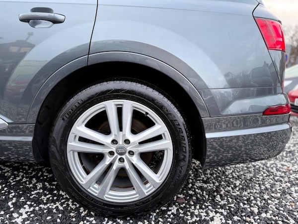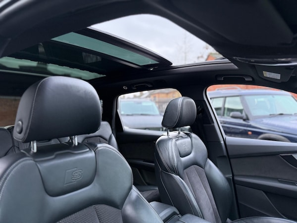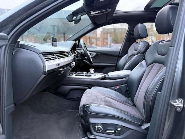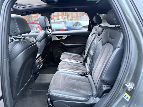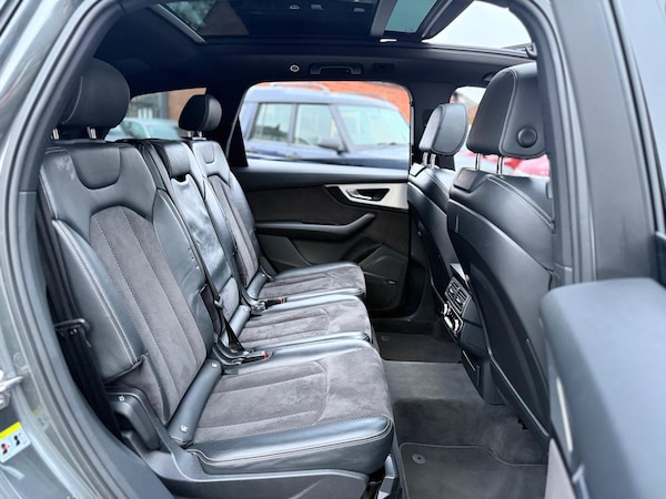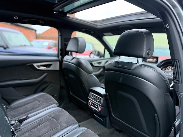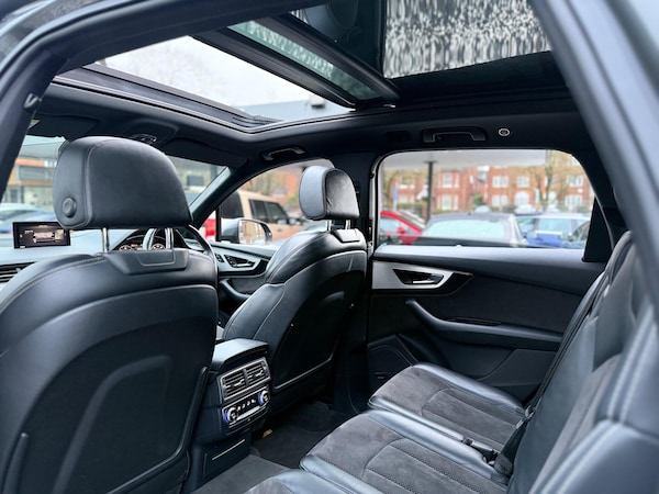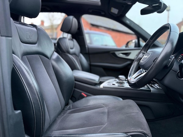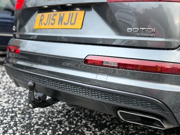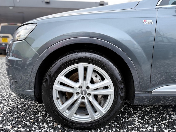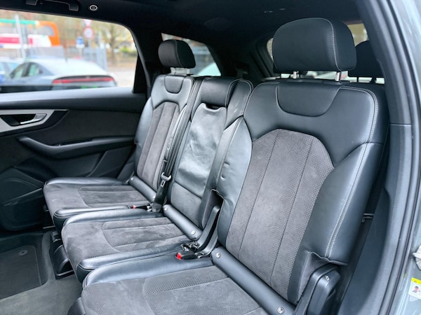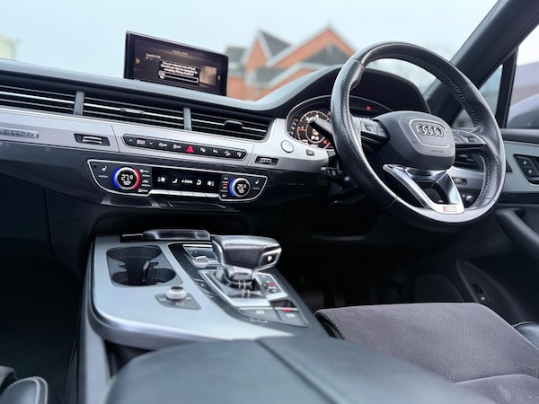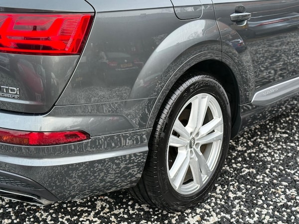 MEGA SPEC, OVER £12,500 OPTIONAL EXTRAS, Boasting exceptionally low mileage for its age, Only driven a genuine 57,000 miles from new, mot February 2027, 2 keys, Backed with a Full Audi dealer service history,, Only 2 former keepers, this 2015 Audi Q7 TDI V6 S line presents a remarkable opportunity. This four wheel drive, seven seat, powered by a potent 3.0 litre diesel engine, meeting Euro 6 emission standards. The S line trim ensures a premium experience, complemented by All Weather LED Headlights, Acoustic and Visual Parking System for the rear, Heads-up display, Lane assist, Virtual Cockpit dash, Adaptive cruise control, Front and rear heated seats, 4 - Wheel steering, Dynamic pack, Electric glass title and slide pan-roof, Folding rear tow bar, Electric rear folding seats, Electric Memory front seats, Front and rear heated seats, Factory privacy glass, Adaptive height suspension, Self park assist, Reverse parking camera, This Audi Q7 stands out with its impressive performance, achieving 0-62mph in just 6.5 seconds, indicating a more responsive drive compared to similar vehicles. Its very low mileage of 57,000 miles suggests it has been well cared for, and it sits within a low insurance group, offering potential savings. Furthermore, with a towing weight of 2800 kg, this Q7 is a capable and versatile choice for a variety of needs, Looks and drive immaculate throughout