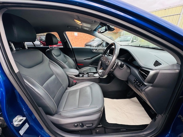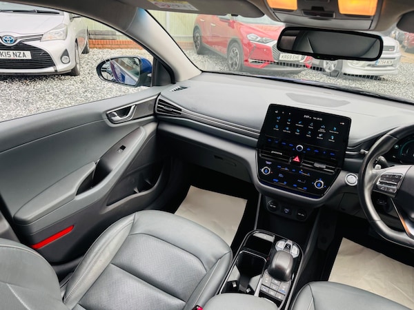 This 2020 Hyundai IONIQ Premium SE offers an impressive electric driving experience with a 42 kWh battery providing a maximum range of 184 miles This model benefits from a full charging time of just 6 hours and 5 minutes at home using a 7kW charger, and can reach 80% charge in a swift 54 minutes at a public charging station, 2 keys, mot march 2027, 12 months road tax £195, Inside you'll find a premium experience with an upgraded Infinity Sound System, Heated front & rear leather seats, front cool seats, front electric seats, heated steering wheel, Automatic headlights with a dusk sensor, keyless entry with an engine start-stop button, Lane Departure Warning System with Lane Keeping Assist, Lane Follow Assist - LFA Cruise Control - Smart Adaptive Speed Control, Paddle Shift Gear Change, Wireless Phone Charging Pad, eCall, Reverse camera and Guidance System, Front and Rear Parking Sensors, front Cup Holders, Daytime Running led Lights, Android Auto for seamless smartphone integration, Driver Attention Alert, Bluetooth Connectivity, DAB radio, usb x2, HAC - Hill-Start Assist Control, Air Conditioning, Dual Zone Climate Control, Privacy Glass, Automatic Windscreen Wipers with Rain Sensor, Autonomous Emergency Brake, Blind Spot Detection System - BSD, Blue Link, Electric Parking Brake with Auto Hold Function, Electric Power Steering with Variable Drive Modes, Electric Windows Front and Rear, Heated Rear Windscreen,